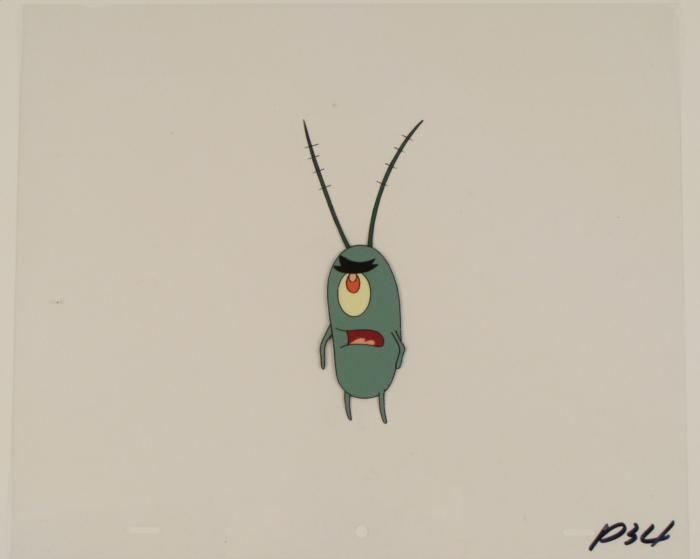 This original animation cel is from the Nickelodeon TV show SpongeBob Squarepants. The story takes place under the deep blue sea in Bikini Bottom, where SpongeBob resides. SpongeBob, who is a yellow, porous sponge, is your typical happy-go-lucky character, as he is always cheerful and enjoys making people laugh. Patrick Star, SpongeBob's neighbor who is a starfish, is your average children's show idiot, as he boasts knowing nothing and is often getting himself into ridiculous situations. Between the homes of these two lies the home of the miserable Squidward, a squid, who is known for being grouchy and playing tricks on SpongeBob and Patrick. Both SpongeBob and Squidward work at the Krusty Krab, a fast food business run by the greedy money-loving Mr. Krabs, a crab, the arch rival of the evil, possibly misunderstood, Plankton. Another neighbor, Sandy Cheeks, an athletic squirrel who normally wears an astronaut's space suit, was introduced in "Tea at the Treedome." She spends most of her time inventing and experimenting. Hey man, totally not cool... What's your deal?Original Production Animated Cel Overall Size of Cel: 10 1/2" x 12 1/2" Excellent ConditionThis is an original hand-painted cel set-up used in the production of an episode of "SpongeBob SquarePants." Each one-of-a-kind set-up represents a slight change in position of the characters. When individually photographed and projected in rapid succession, the images appear to move.