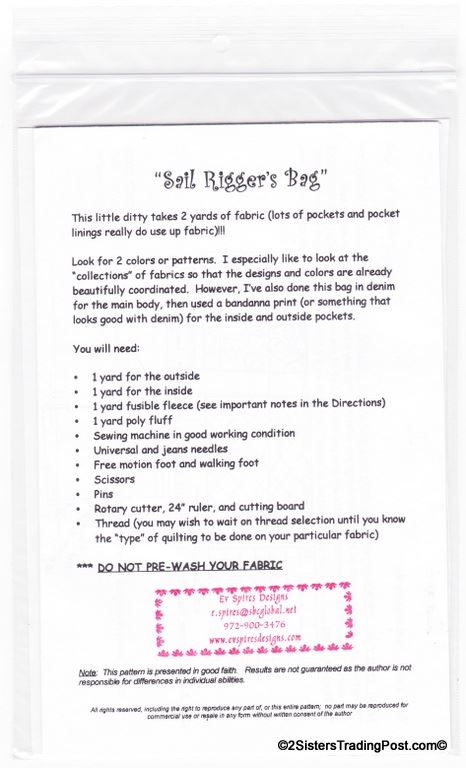 'Sail Riggers Bag' by E. V. Spires designs, requires 2 yards of fabric SRP $8.99