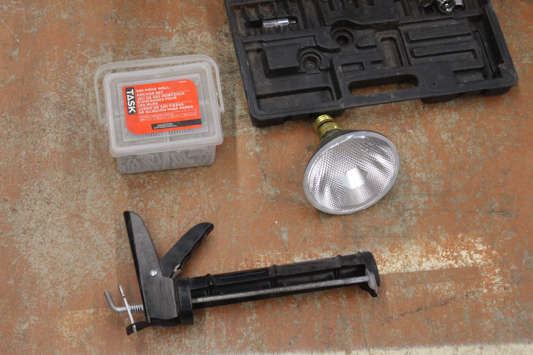 * Tote, Misc. Socket Set, Caulking Gun, Anti Freeze Tester, Small Organizer, Misc.