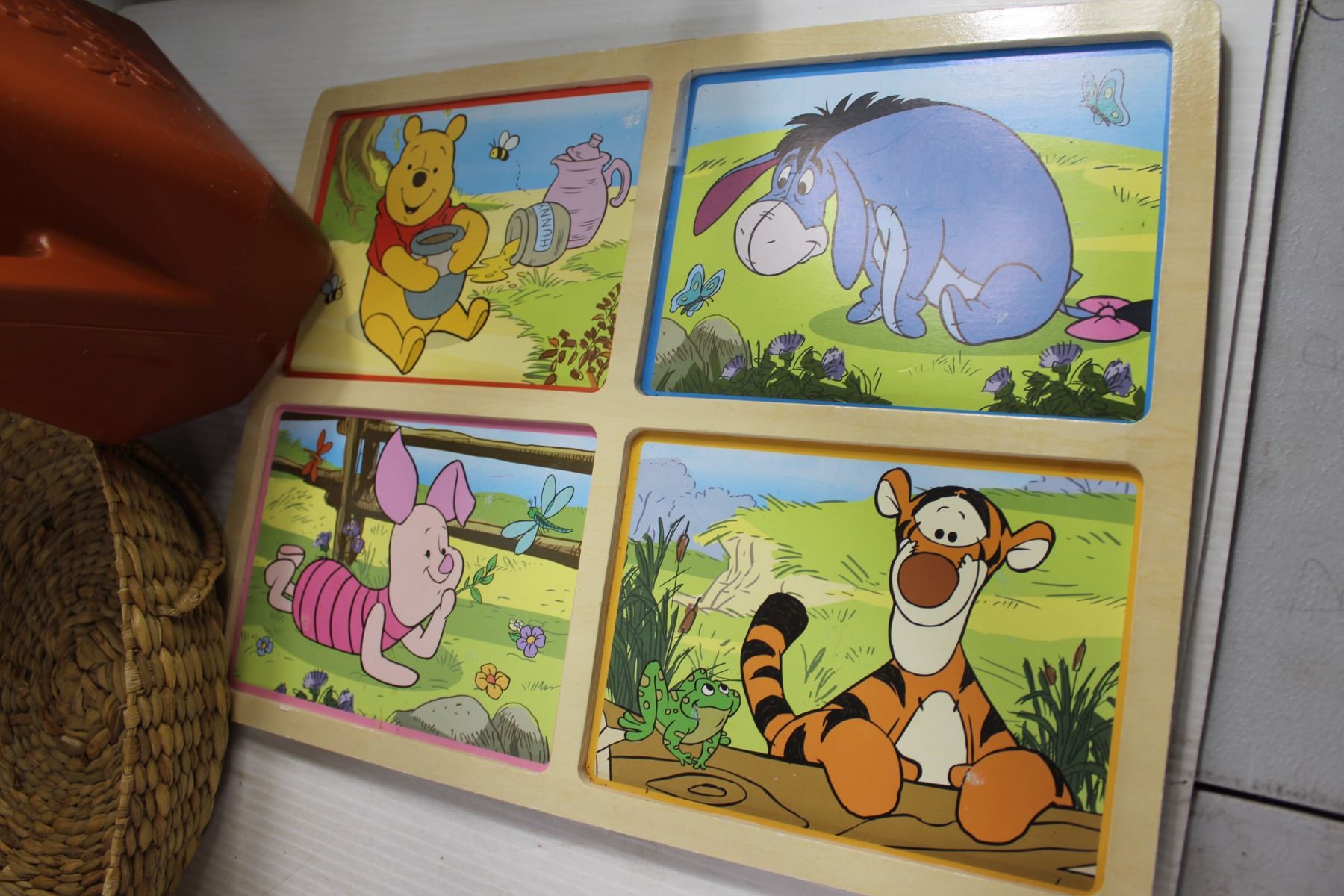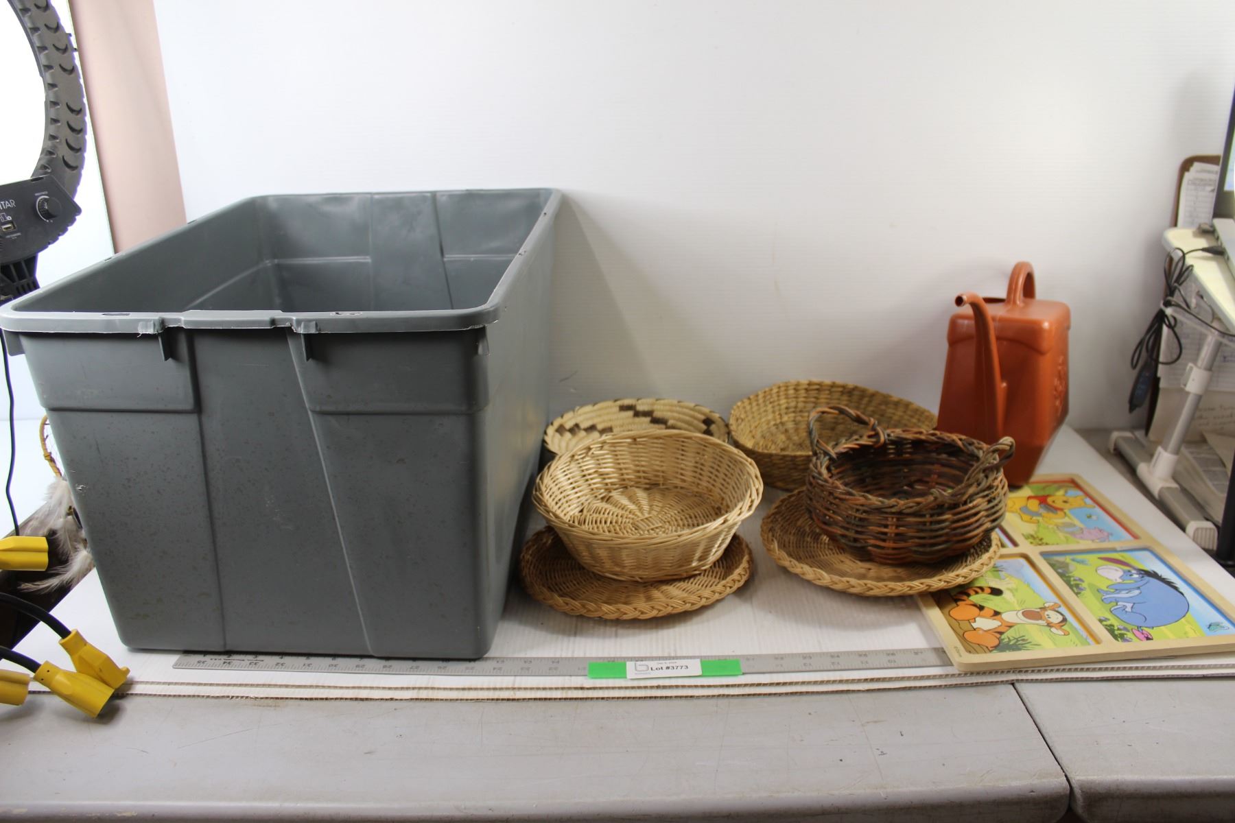 * Tote, Winnie The Pooh Sign - 16" x 12", Watering Can, (6) Wicker Baskets/Trays