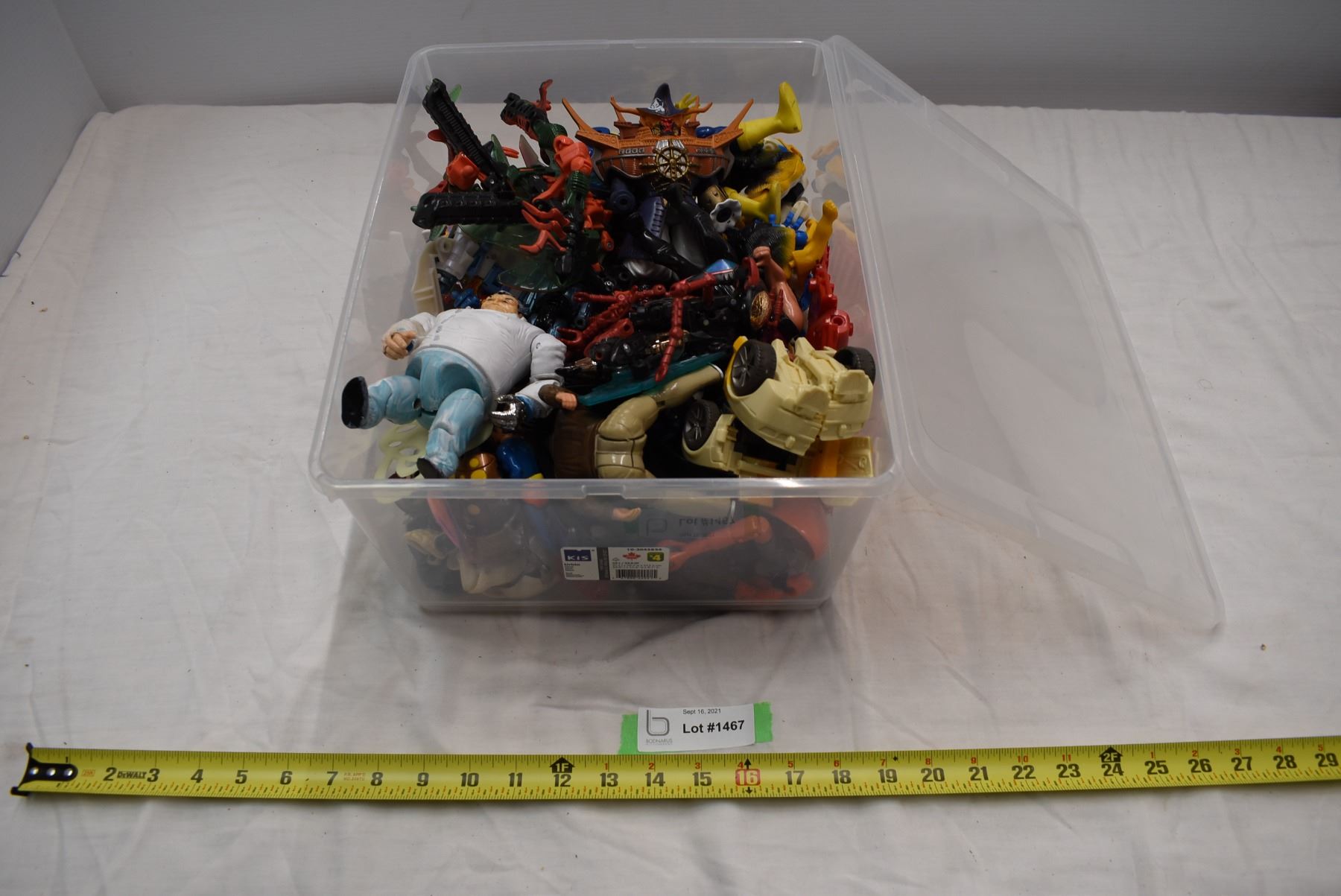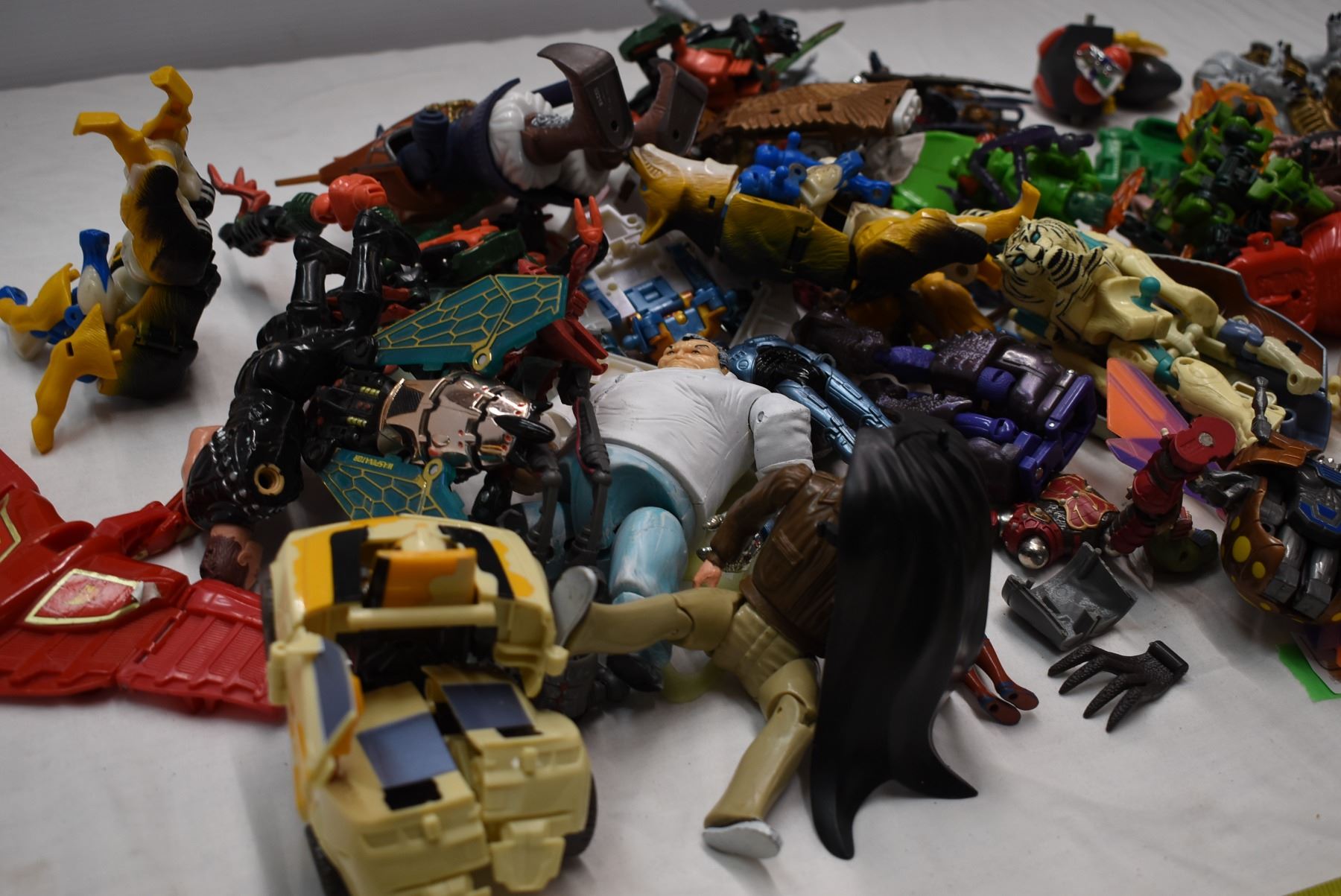 Tote of action figures (missing limbs/damaged)