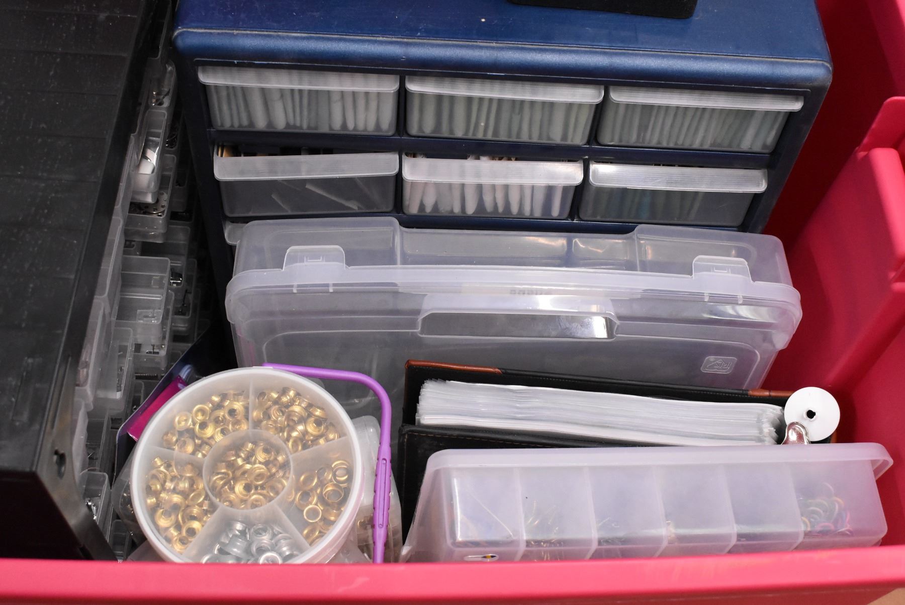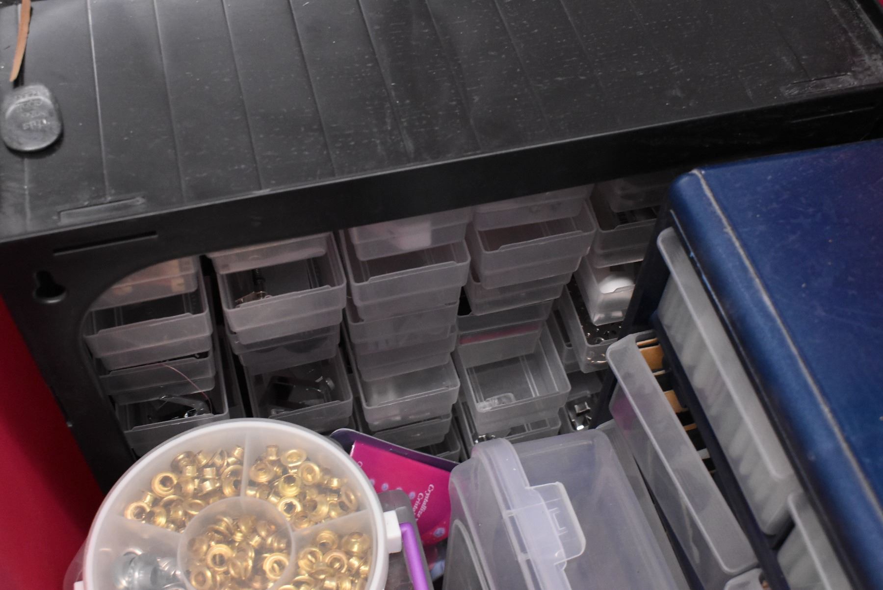 Tote w/ Button Puncher, Buttons, Sewing Supplies