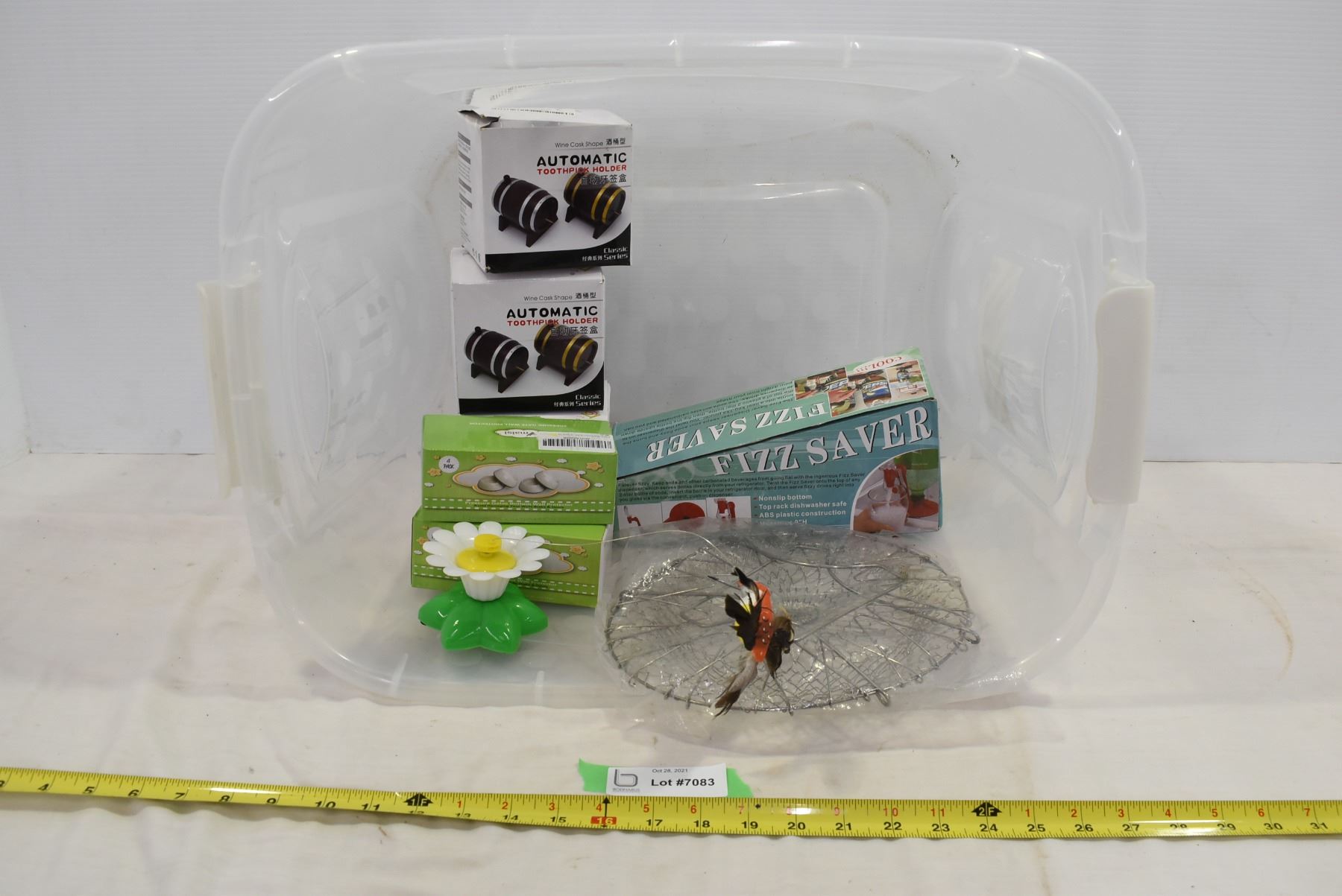 Tote w/ Fizz Saver, Spinning Bird, Toothpick Holders, Misc.