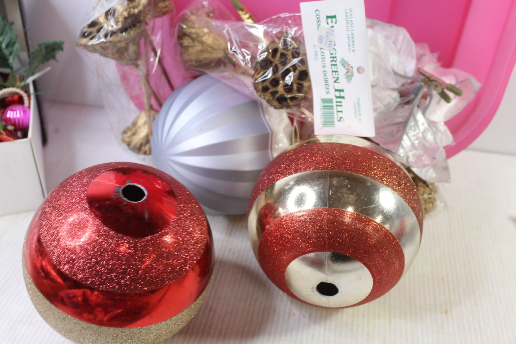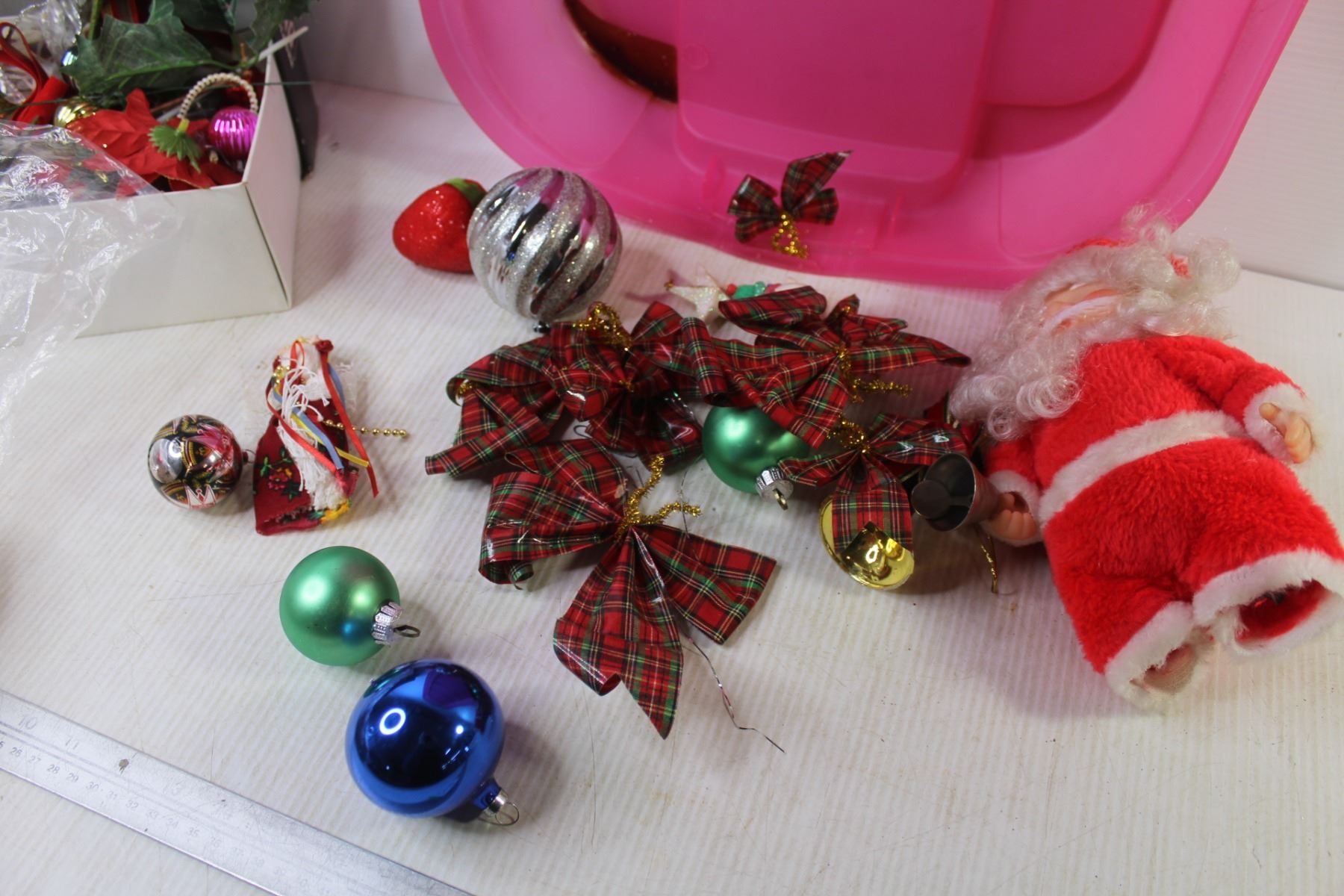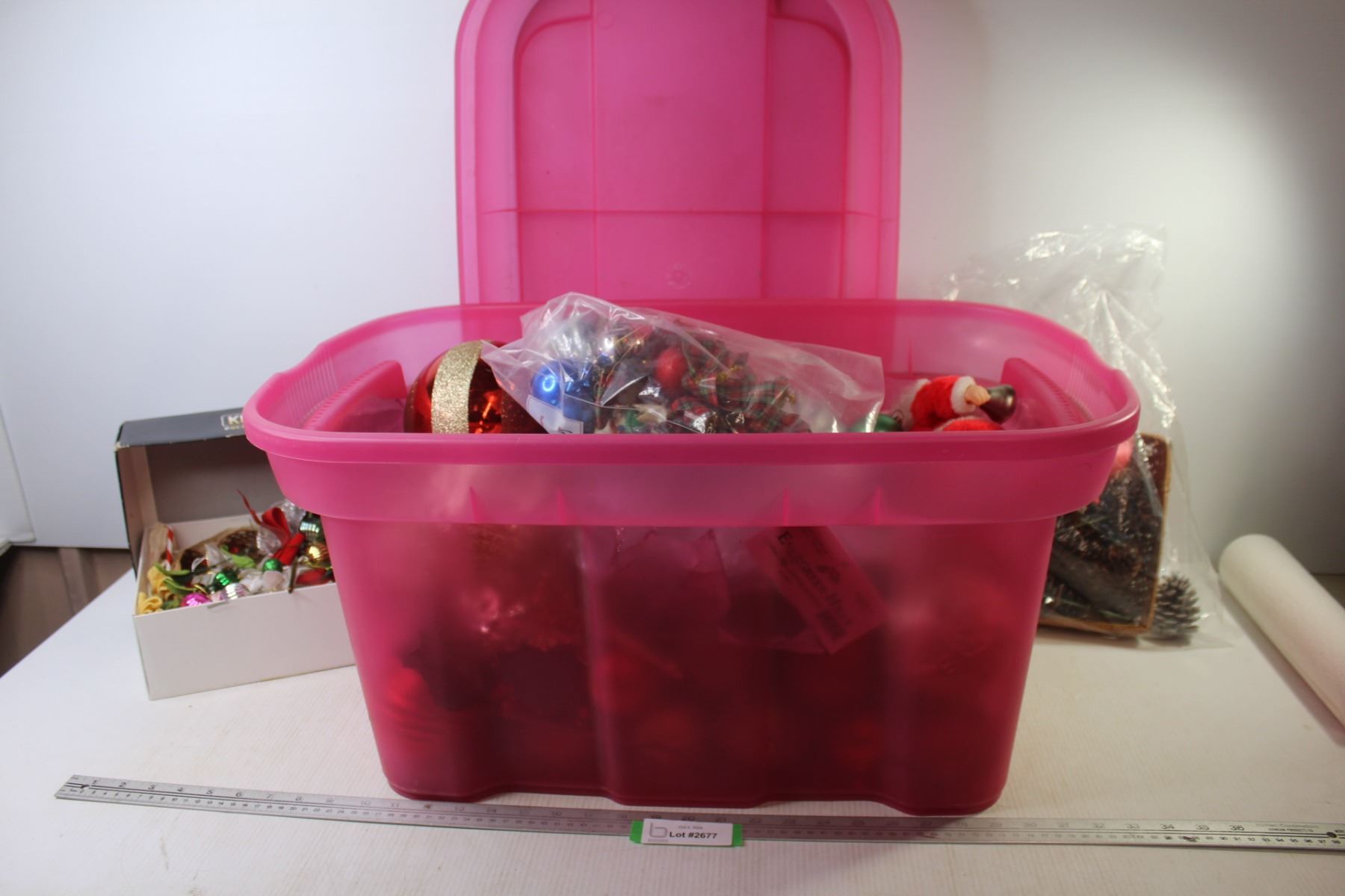 Tote w/Lid - Assorted Christmas Decor - Tree Topper - Ornaments