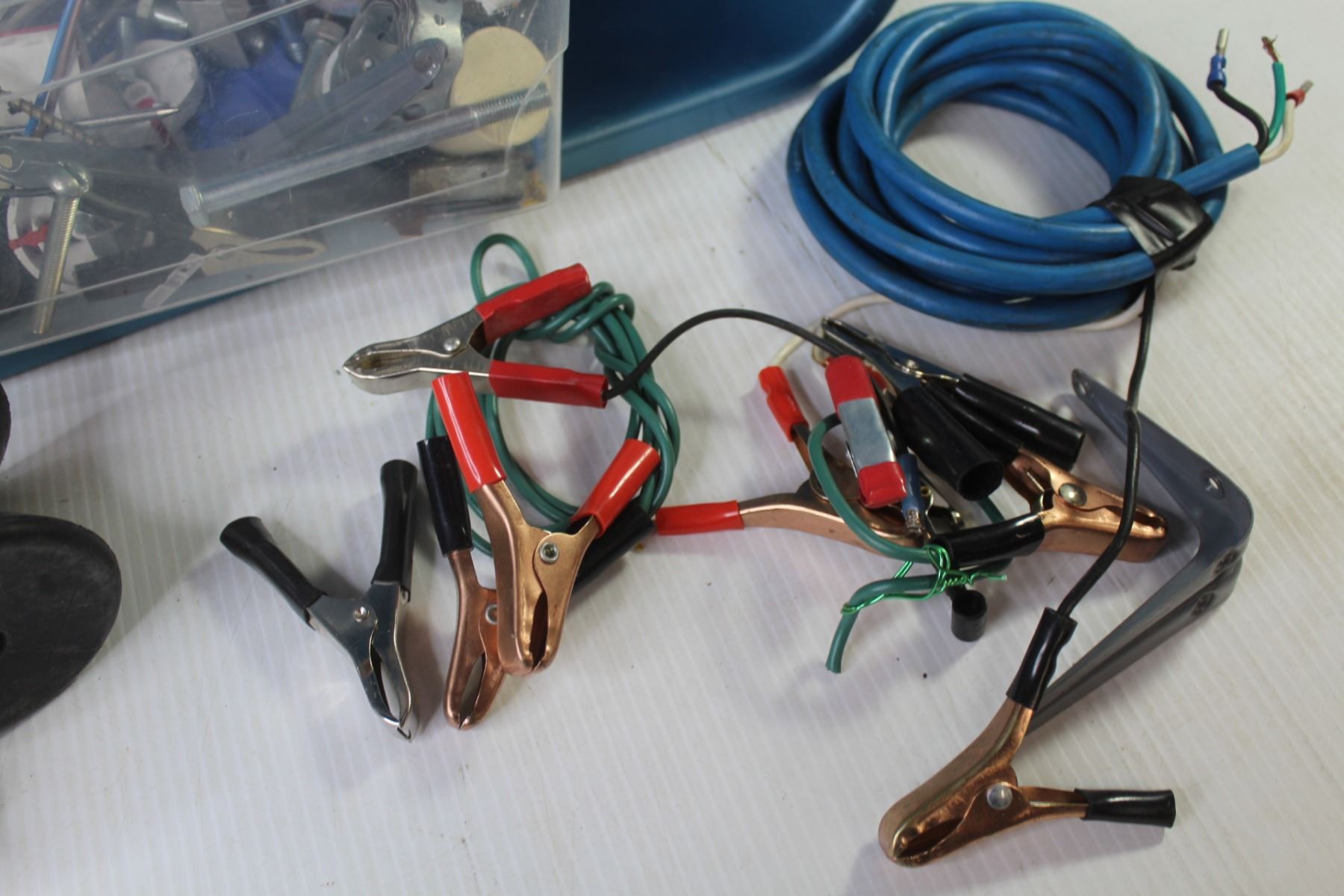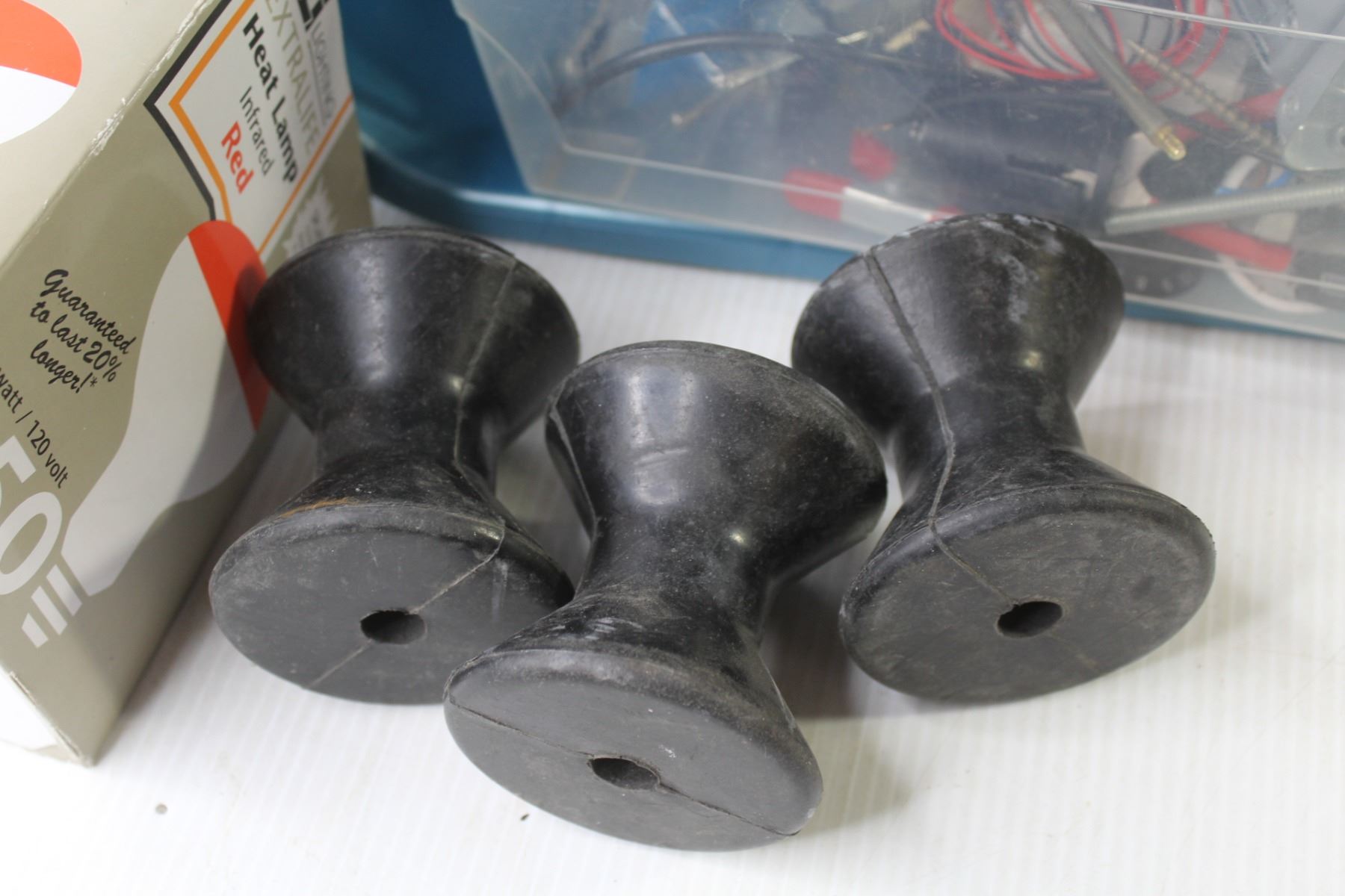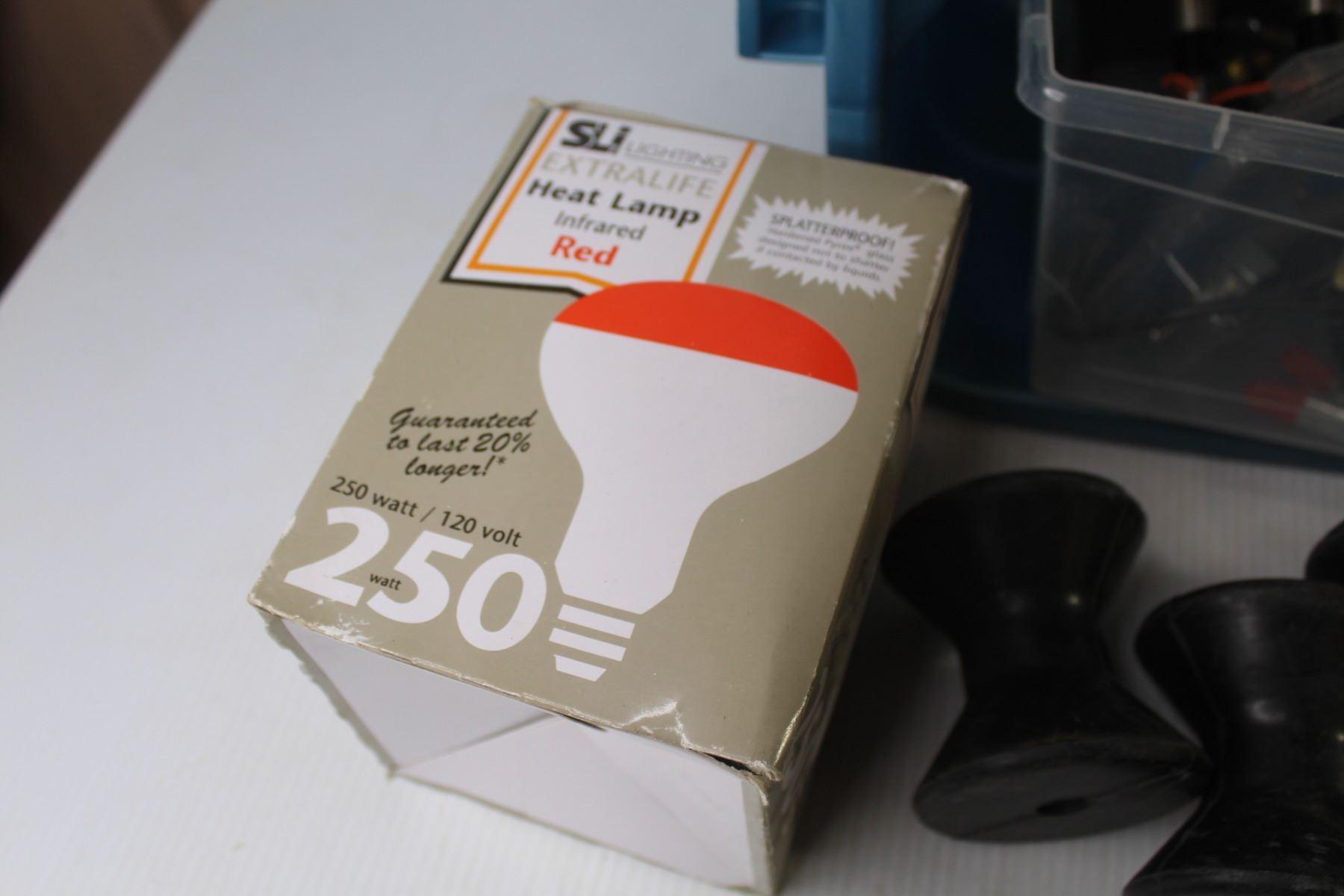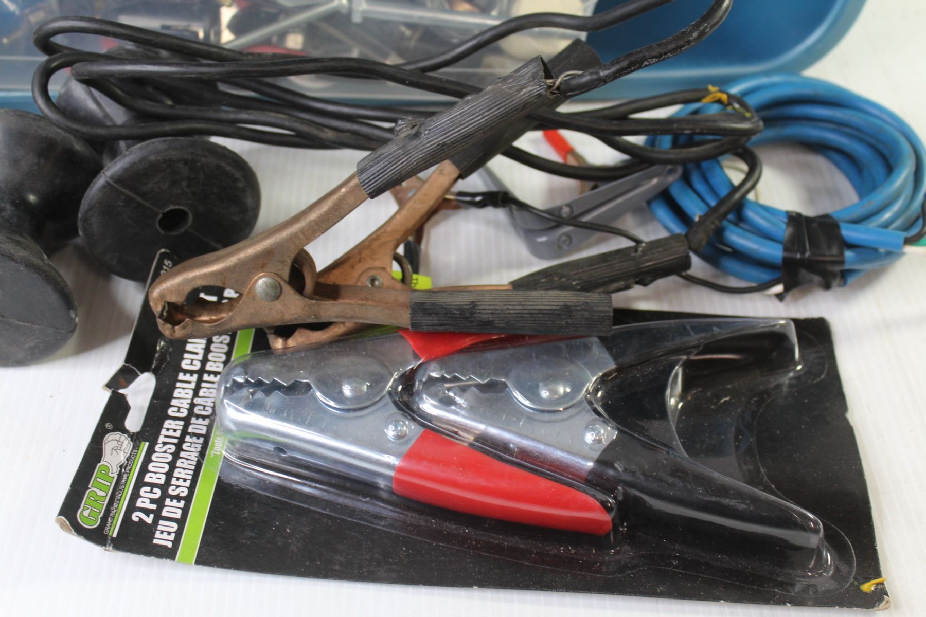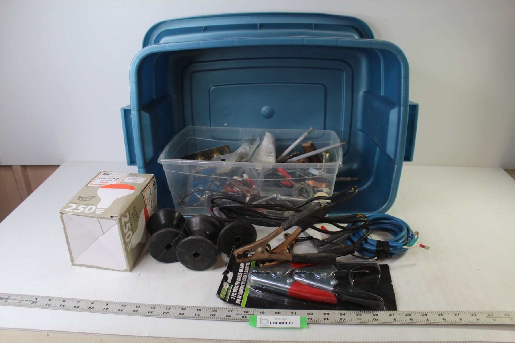 Tote w/Lid - Booster Cable Clamp Set - Heat Lamp Red - Rubber Rollers - Small Clips