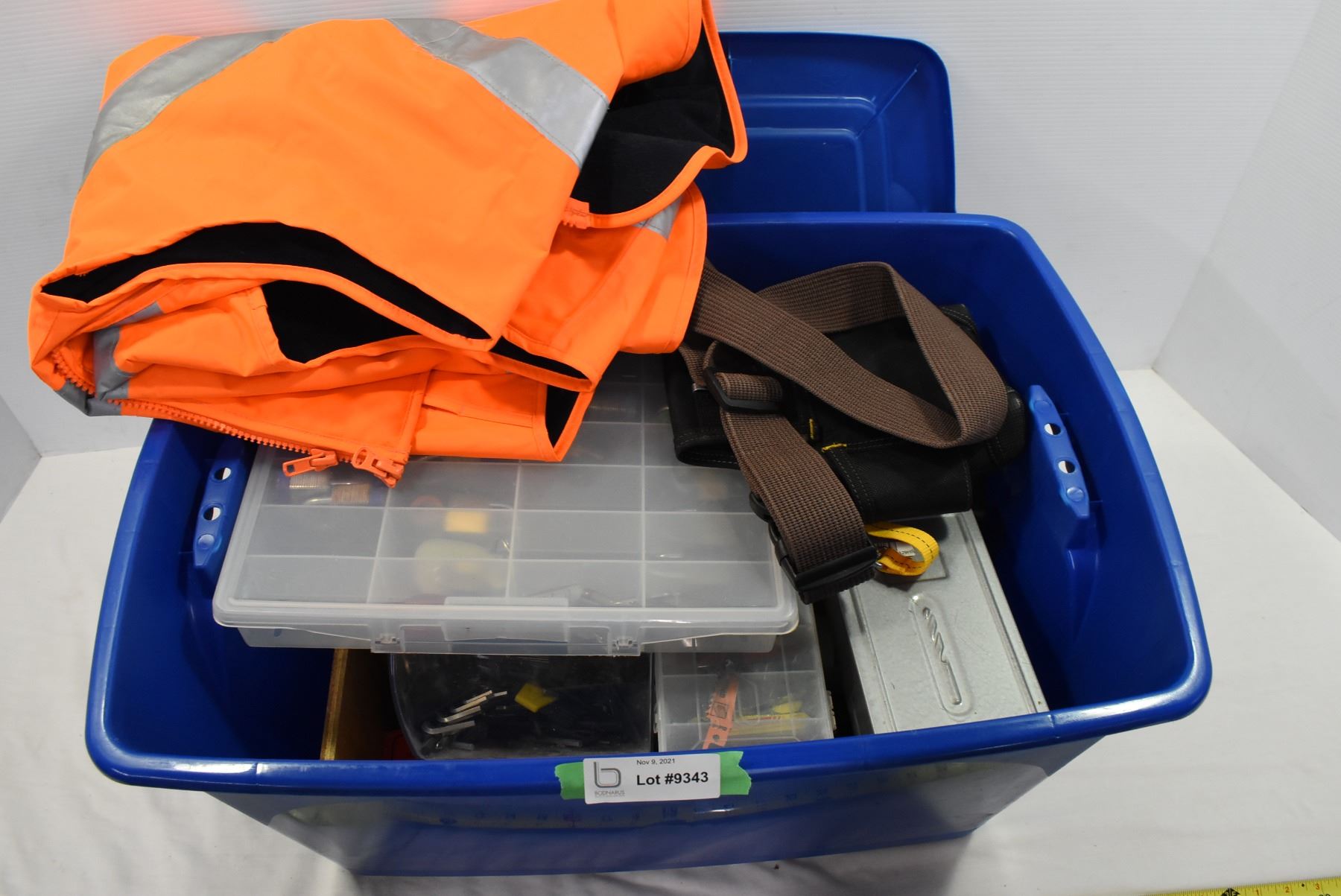 Tote w/ Reflective Vest, Misc. Garage/Building Supplies