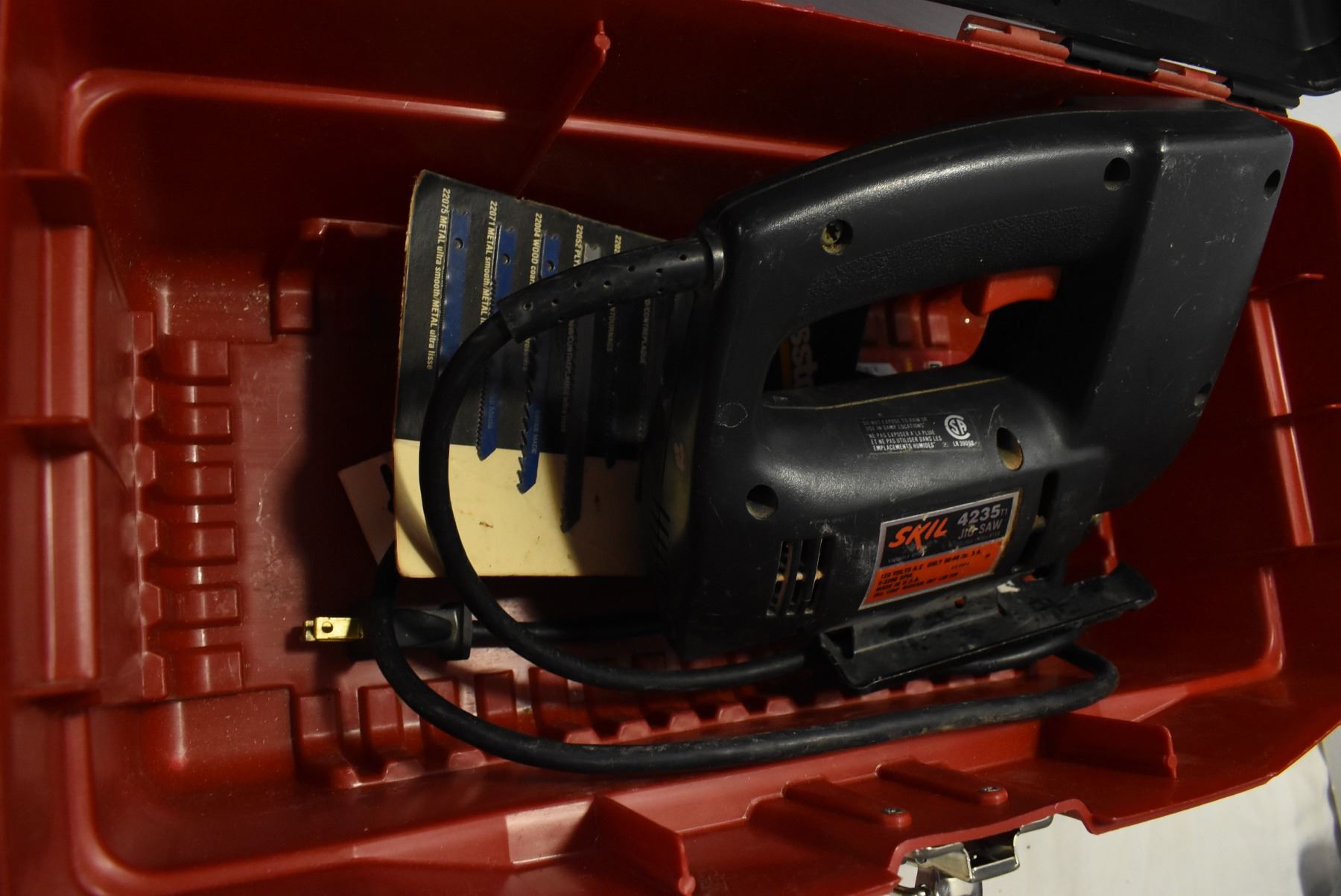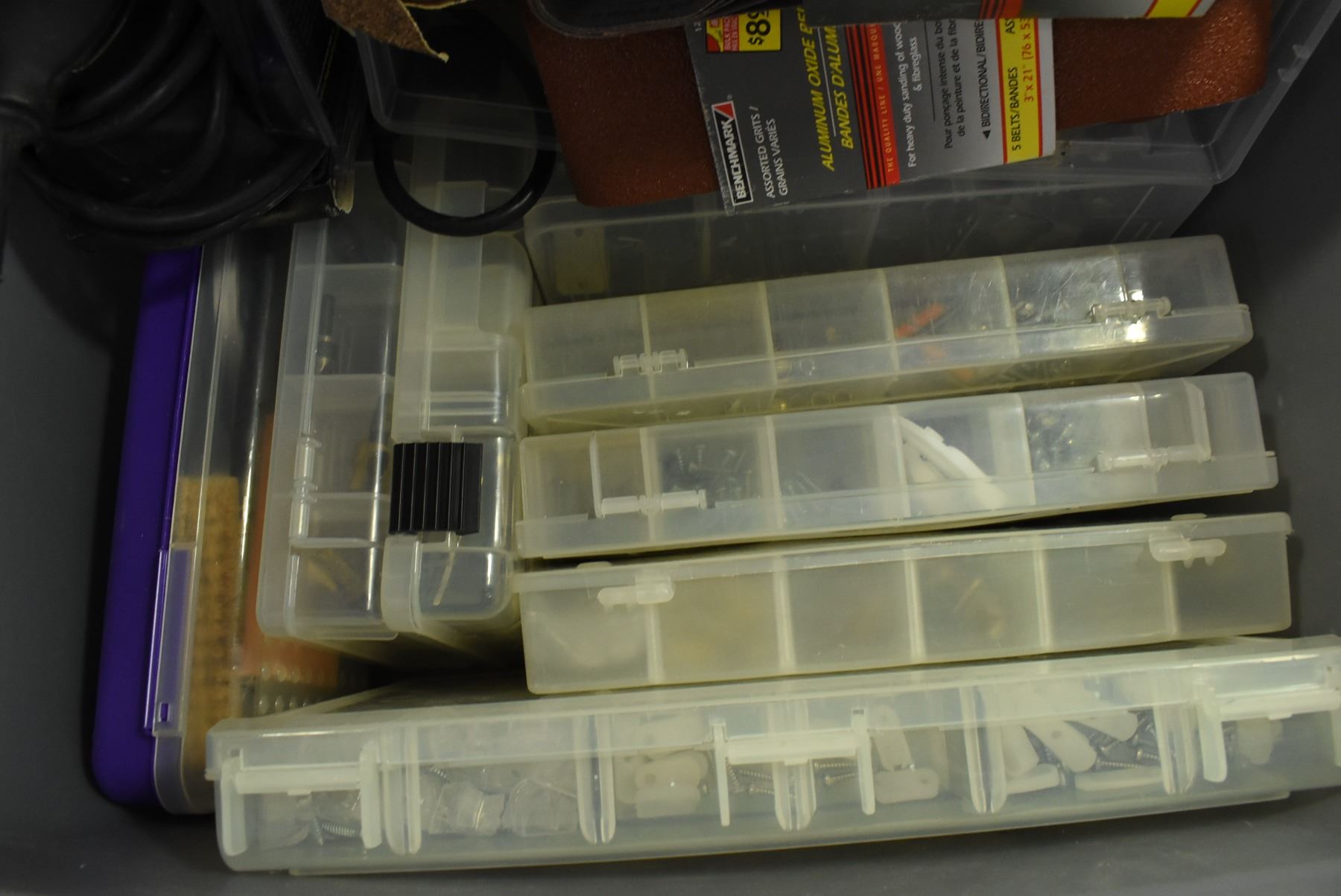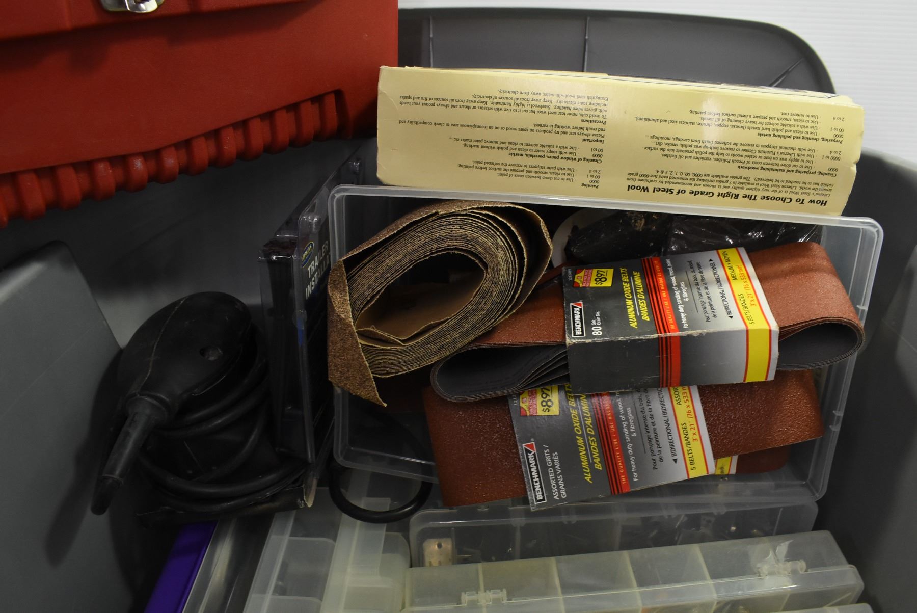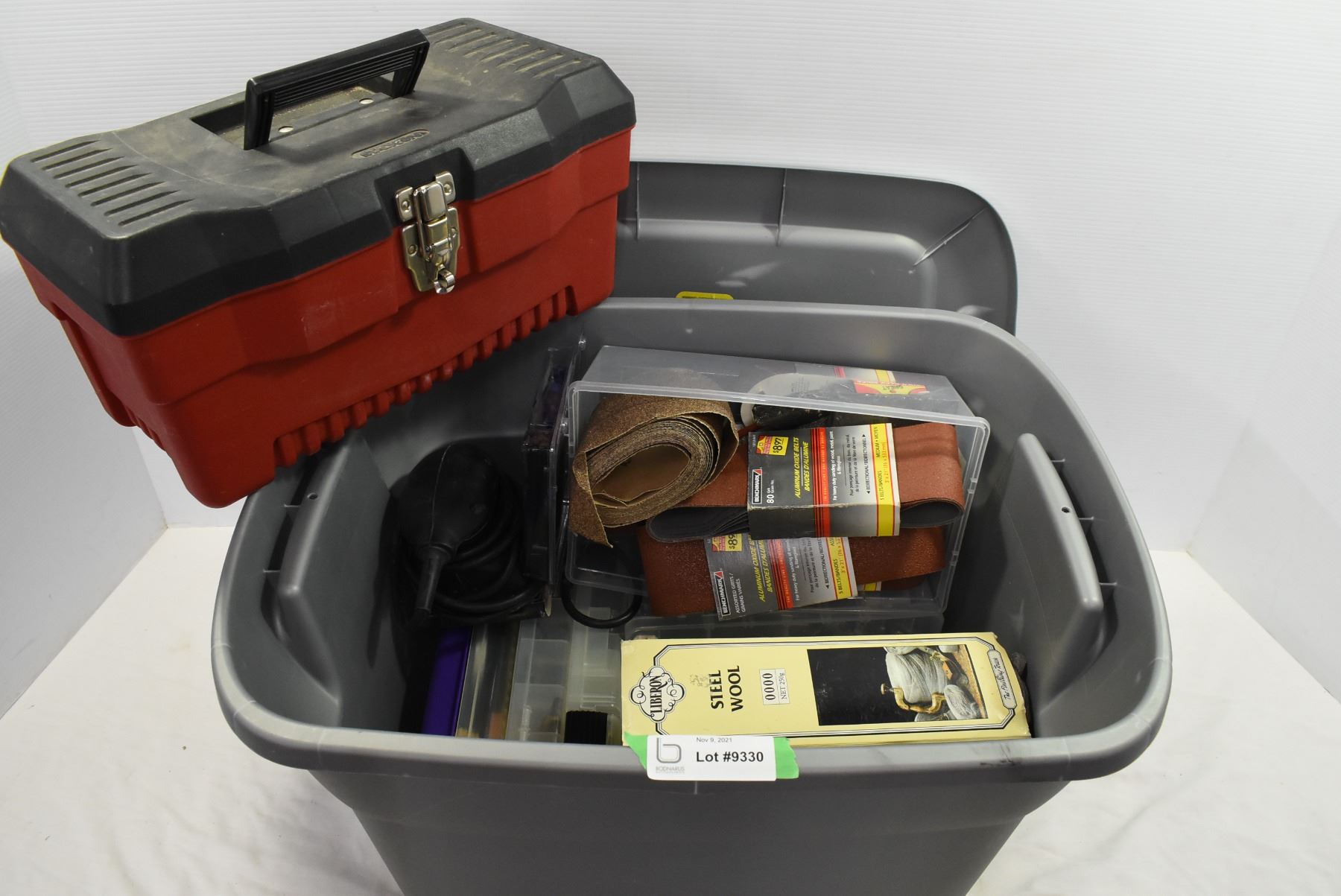 Tote w/ Sander, Skilsaw, Assorted Building Supplies