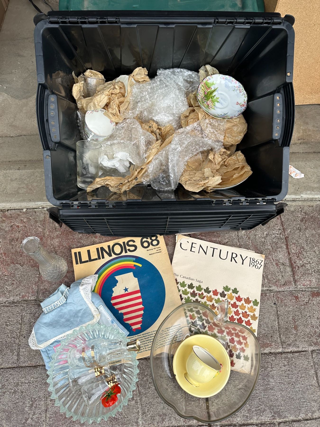Tote with Estate Items - Teacup + Other Glass Items