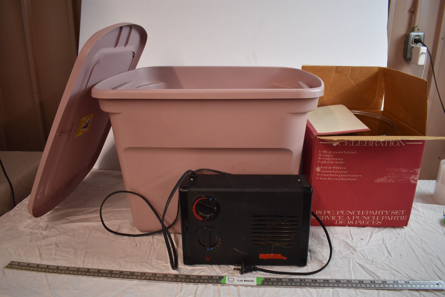 *Tote with Heater (Working), Punch Bowl, and Misc