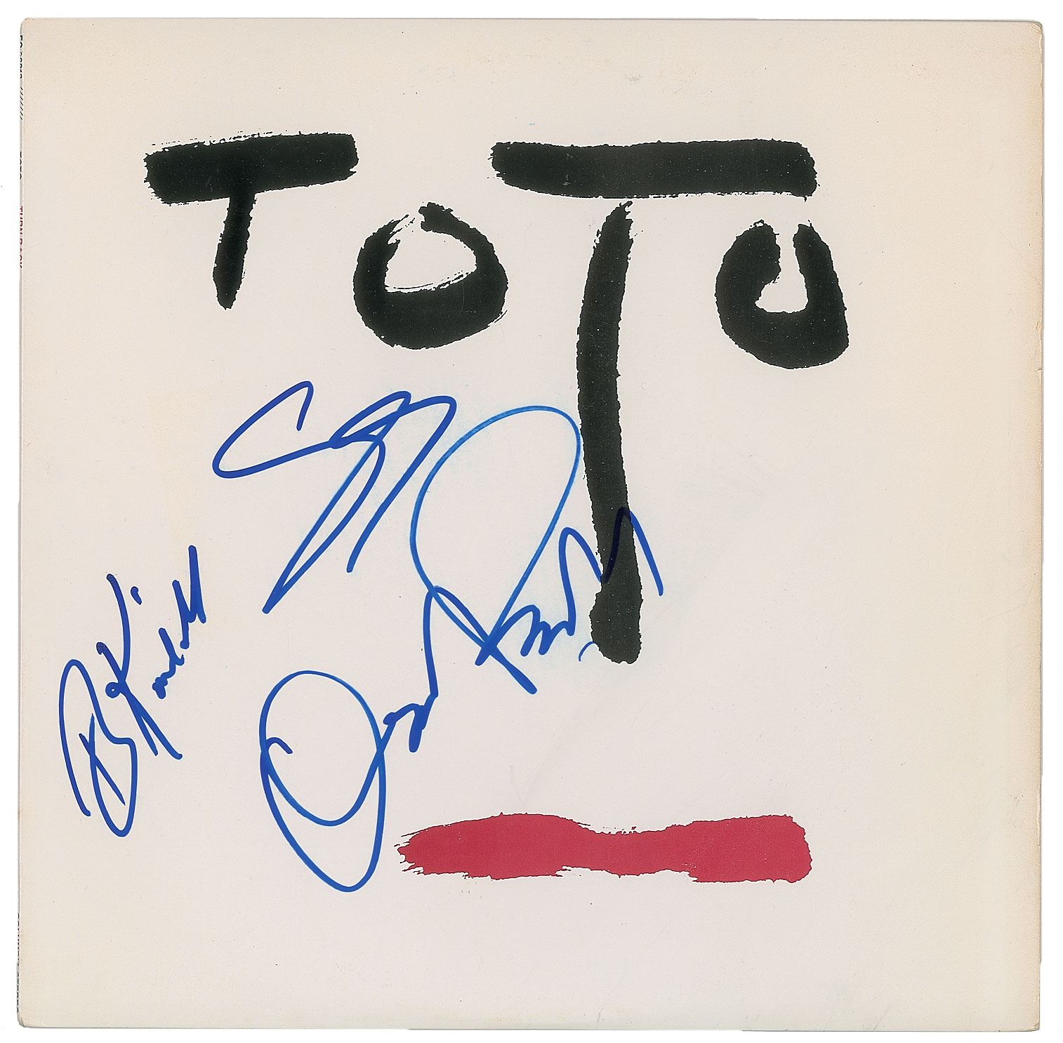 Turn Back album signed on the front cover in blue felt tip by Bobby Kimball, Steve Porcaro, and David Paich. In fine condition. The record is included.