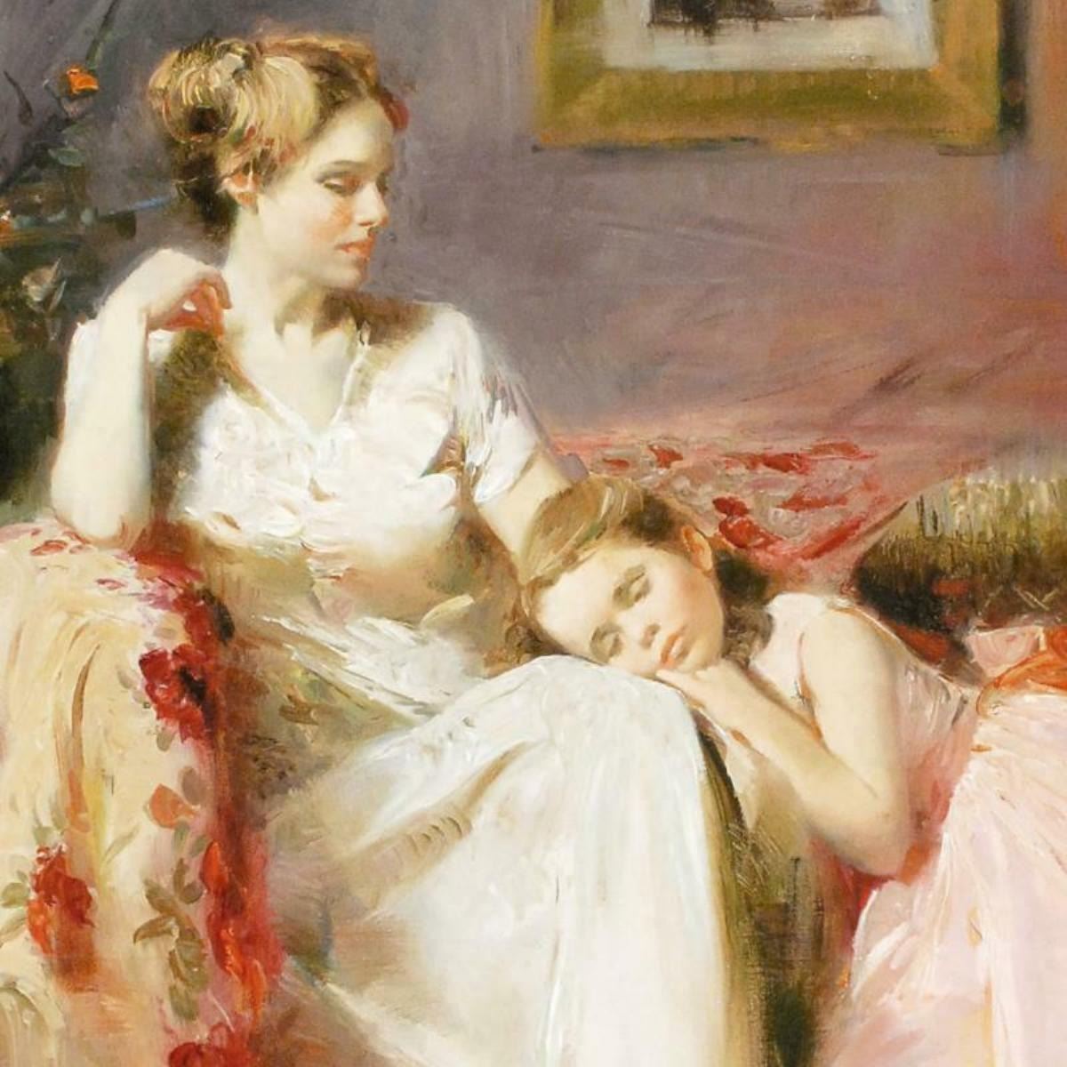 "Touch of Warmth" is an artist embellished limited edition giclee on canvas by Pino (1939-2010), AP Numbered and hand signed by the artist. Includes Certificate of Authenticity. Measures approx. 40" x 30" (image). This piece is not stretched.