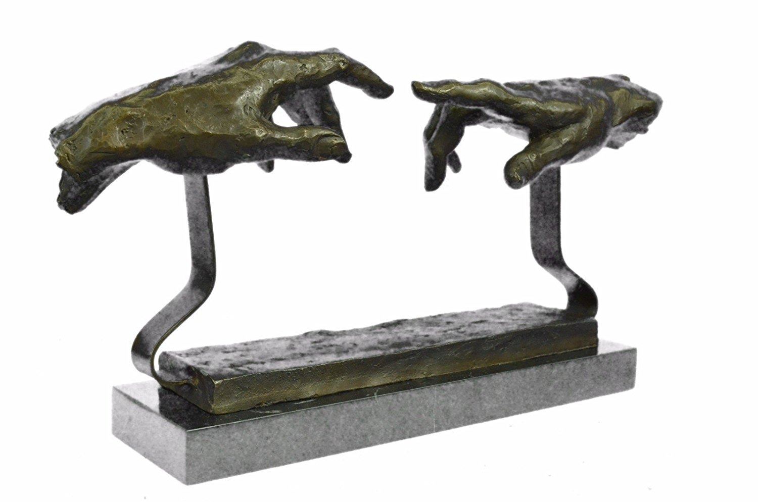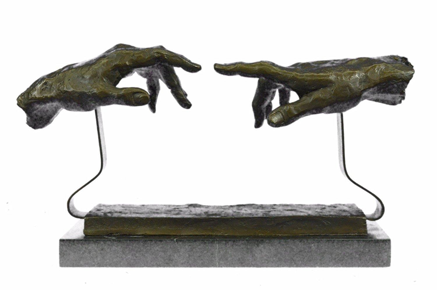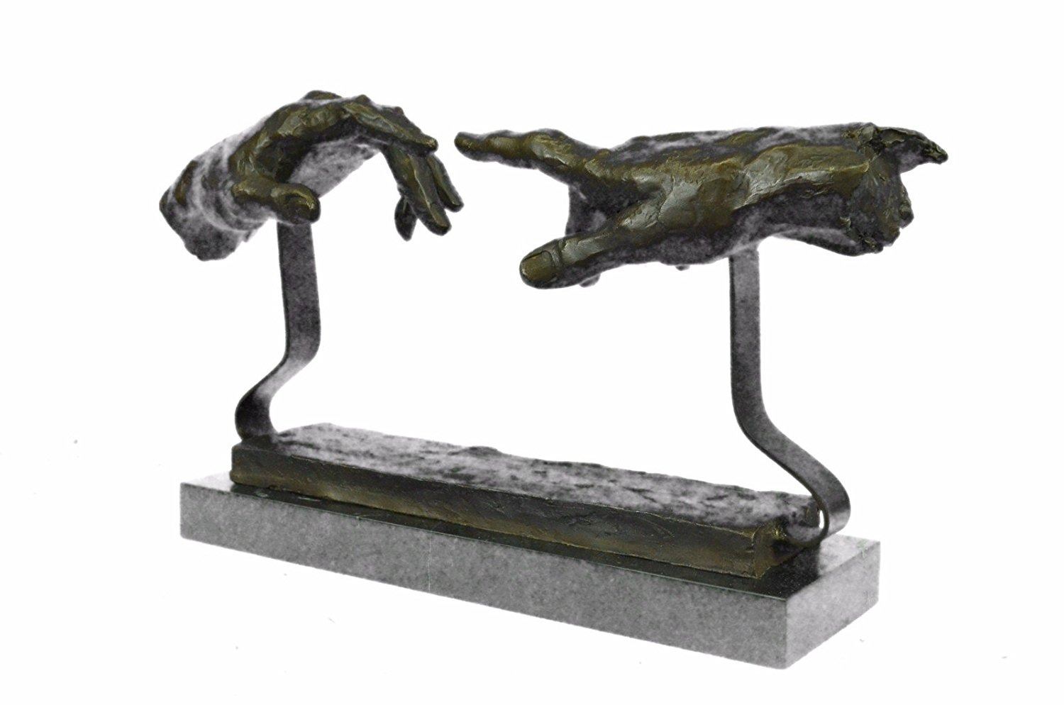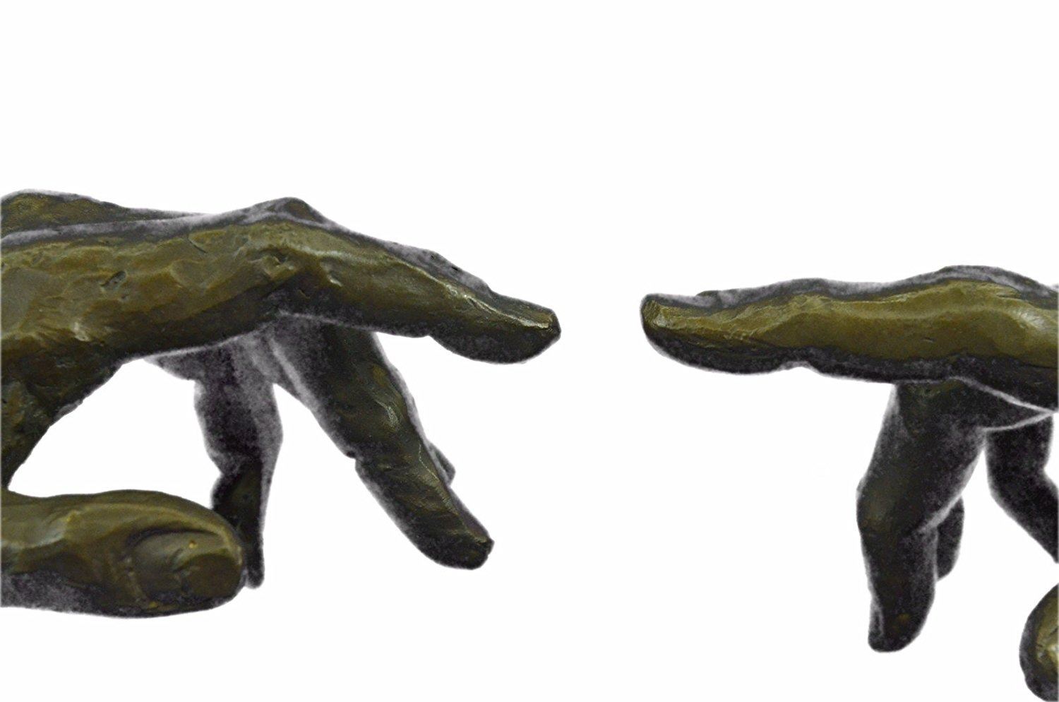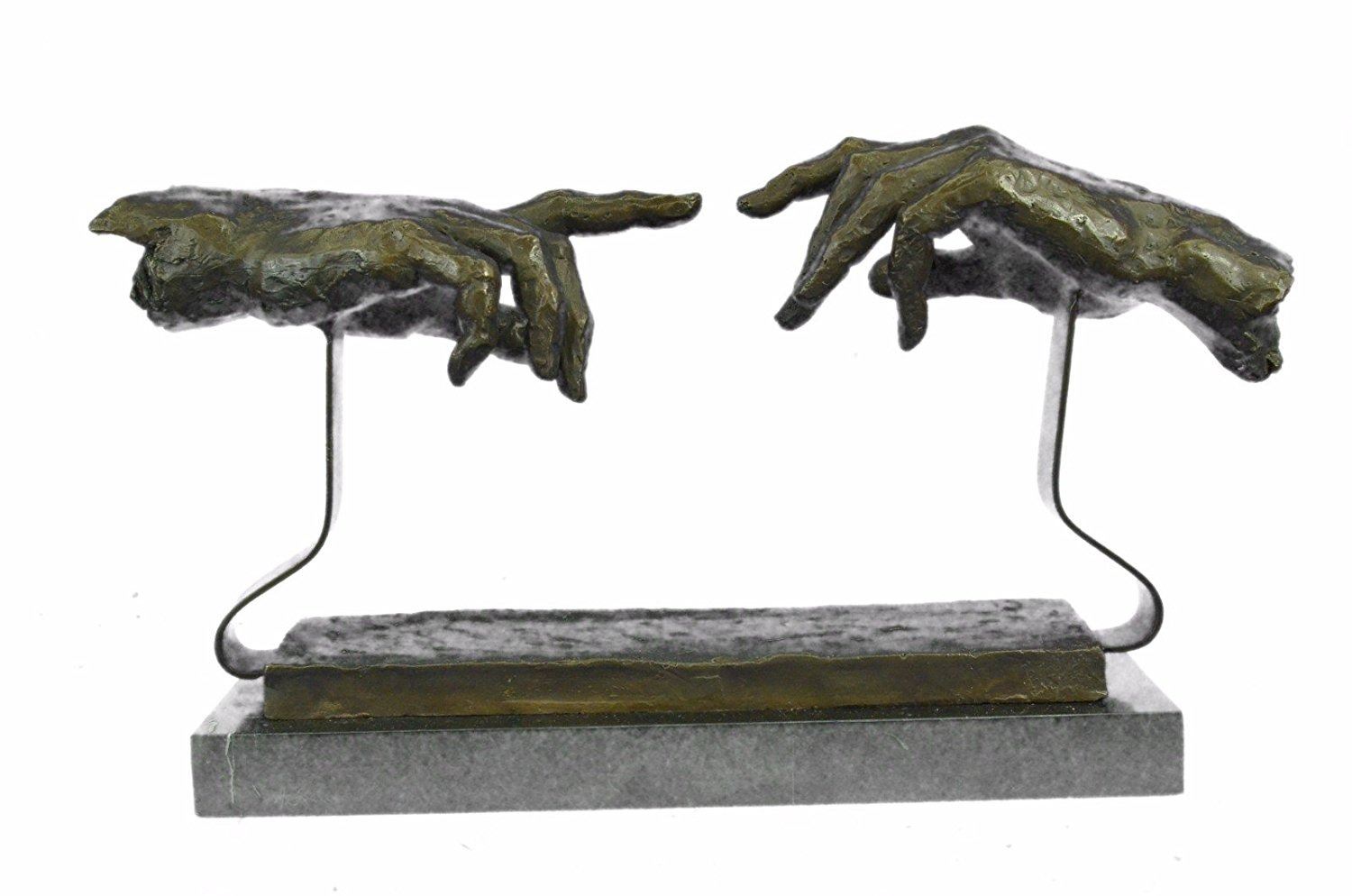 This is a unique representation of the famous artist, Michelangelo's painting, The Creation of Adam. The painting is a section of Michelangelo's fresco Sistine Chapel ceiling painted circa 1511. It illustrates the Biblical story from the Book of Genesis in which God the Father breathes life into Adam, the first man. Our artist has transformed this historic painting into an abstract 3D form. Only nine of these pieces were carefully hand crafted, resting on a solid black marble base. Bronze Dimensions with Marble Base: Height 9 X Width 18 inches. Weight: 12 LBS. Inventory: 61X12307416