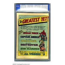 Tough Kid Squad Comics #1 (Timely, 1942) CGC FN/VF 7.0 Cream to off-white pages. Timelys continue to lead the way in the Golden Age market. Offered here is a rare first issue of a title that did not last. Overstreet lists this book as being scarce, and as the origin and first appearance of the Human Top and the Tough Kid Squad. The Flame also makes an appearance, making this a Golden Age superhero book all the way. This beautiful copy just has some very light wear around the extreme edges. Overstreet 2002 FN 6.0 value = $2,769; VF 8.0 value = $6,000. Important notice: We expect to be auctioning lots at the rate of 200-250 per hour. Sometimes eBay Premier live bid software cannot keep up with that pace, so we strongly recommend that you place a realistic proxy bid now as insurance to avoid disappointment. Also please note that all Heritage/CAA lots purchased through eBay Premier carry a 20% Buyer's Premium. Please make sure you read the Terms and Conditions.