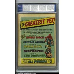 Tough Kid Squad Comics #1 (Timely, 1942)CGC VG/FN 5.0 Off-white pages. This one-shot preceded the first appearance of The Boy Commandos in Detective Comics #64 by several months. Maybe because, besides being a one-shot, it is also listed as scarce by Overstreet, a notation verified by the fact that until recently CGC had not graded this book at all, in any condition. The cover is vintage wartime Timely, with the evil Doctor Klutch's plans being contested by the heroic juveniles, the Danger Twins, while other youths are held in bondage. Just the sort of stuff that endears Timely to us! Being a one-shot, this issue quite naturally is where you will find the origin and first appearance of the Tough Kid Squad. Other stories feature the Human Top and Flying Flame. This is it! Overstreet 2002 GD 2.0 value = $923; FN 6.0 value = $2,769. Important notice: We expect to be auctioning lots at the rate of 200-250 per hour. Sometimes eBay Premier live bid software cannot keep up with that pace, so we strongly recommend that you place a realistic proxy bid now as insurance to avoid disappointment. Also please note that all Heritage/CAA lots purchased through eBay Premier carry a 20% Buyer's Premium.