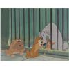 (Walt Disney Studios, 1955) Original production cels featuring Boris, Pedro, Toughy, and Bull from Lady and the Tramp. The cels have been trimmed and applied to a hand-painted background. Total image measures 12 x 7, with a mat opening of 11 x 14. Double-matted to an overall size of 20 x 18, with the fully intact original Walt Disney label on the reverse which states, “This is an original painting on celluloid, actually used in the Walt Disney production of ‘Lady and the Tramp.’” The inner mat is hand-titled in pencil, “Walt Disney’s ‘Lady and the Tramp,’” and bears the encircled “Original WDP” stamp. In fine condition.