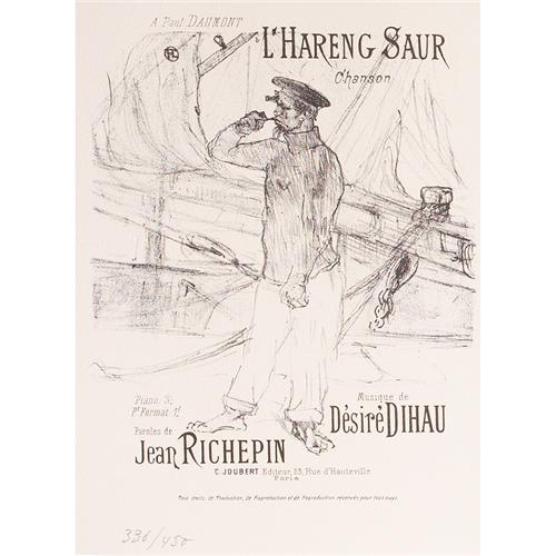 Toulouse Lautrec lithographs, reproductions (one shown), two, advertising prints, all signed, all editions 336/450, unframed, 12.5"w x 16.5"h