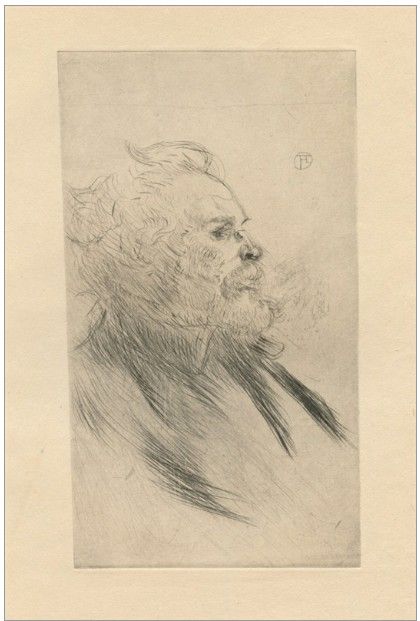 Toulouse-Lautrec original etching - drypoint "Charles Maurin" - Medium: original etching and drypoint. Best known for his lithographs, Toulouse-Lautrec executed only nine drypoints during his artistic career, and this composition is one. Although it was executed in 1898, no impressions were printed during Lautrec's lifetime. The impression offered here, printed in black ink on wove paper, is from the deluxe edition of 200, published by H. Floury in 1926 for the very rare volume by Maurice Joyant, "Henri de Toulouse-Lautrec Peintre et Dessins - Estampes - Affiches". The plate measures 6 3/4 x 3 7/8 inches (170 x 98mm) - Professionally Framed & Matted - Comes With Certificate - -