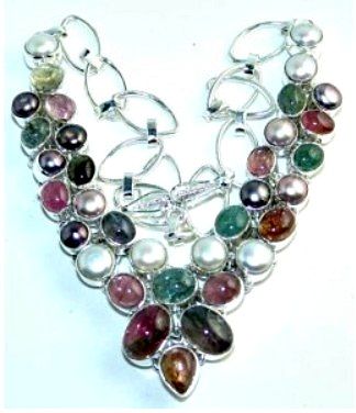 Silver and Tourmaline & Pearl Necklace. Allow 6 to 8 weeks for delivery.