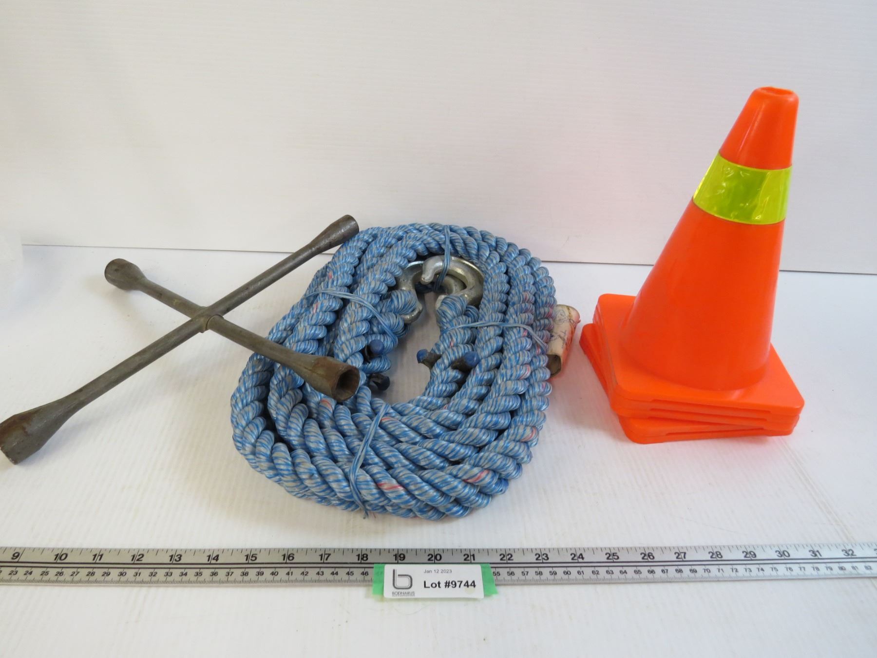 Tow Rope (20') - Tire Iron - (5) Small Safety Cones