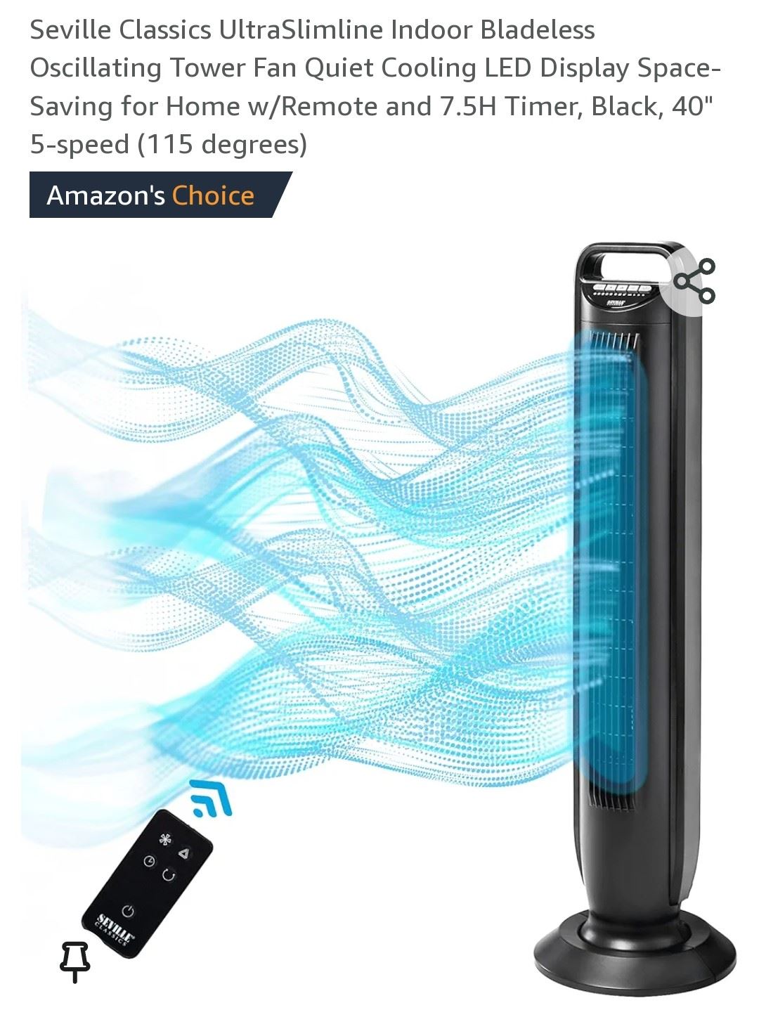 Bladeless oscillating fan with LED display and remote control, space-saving and quiet with a 7.5-hour timer, new.