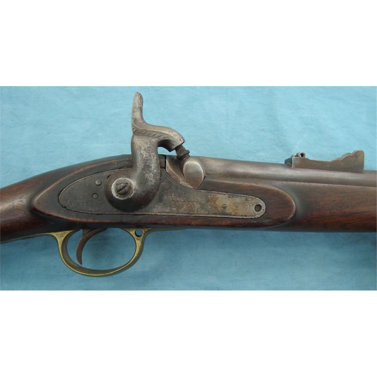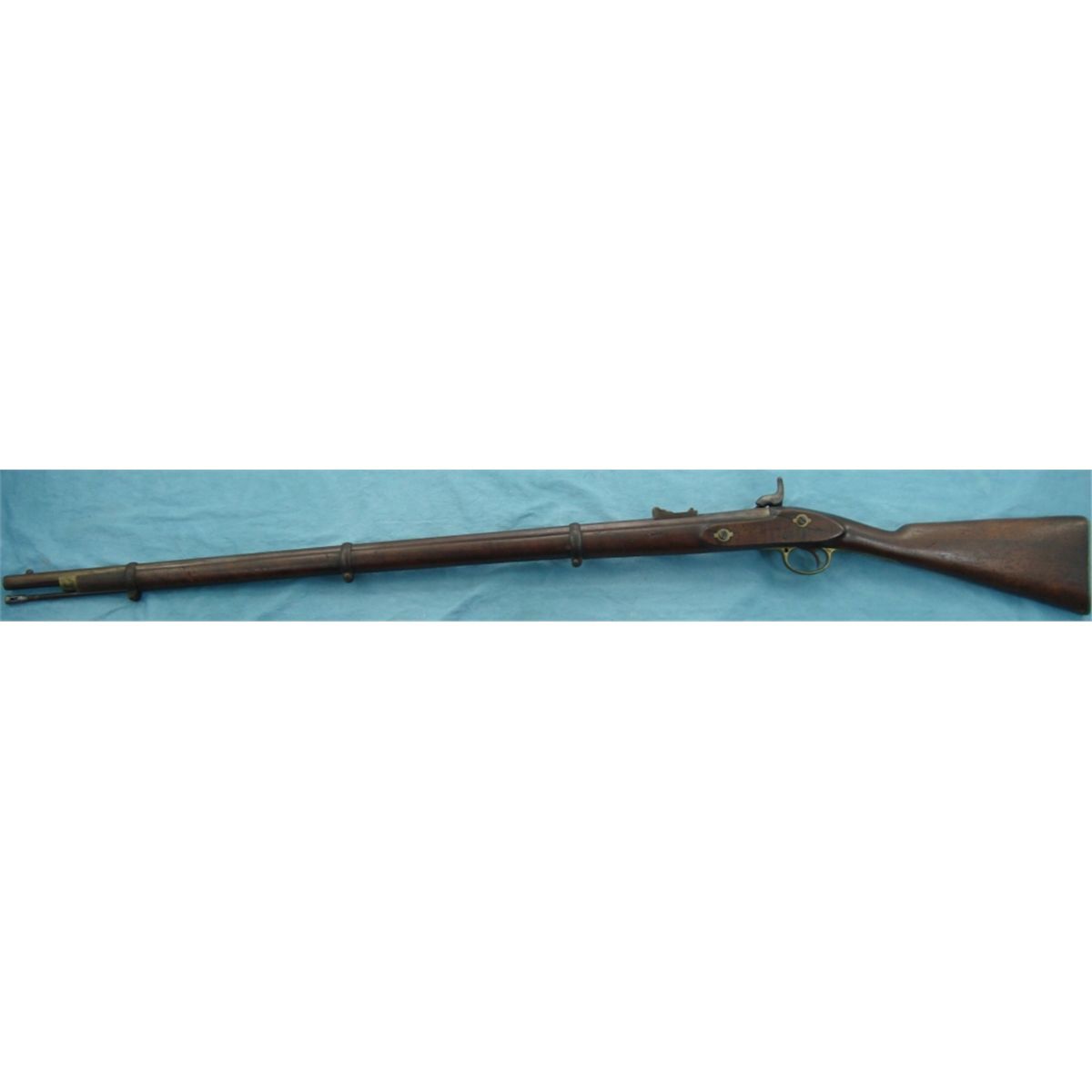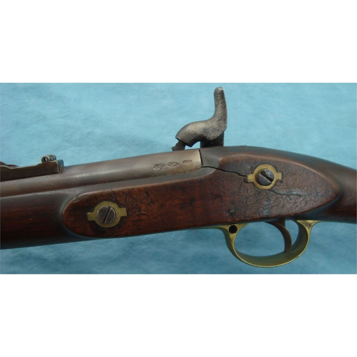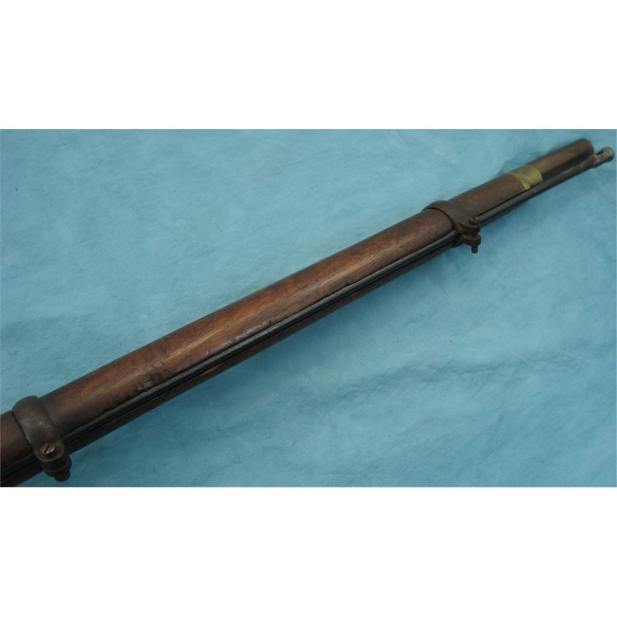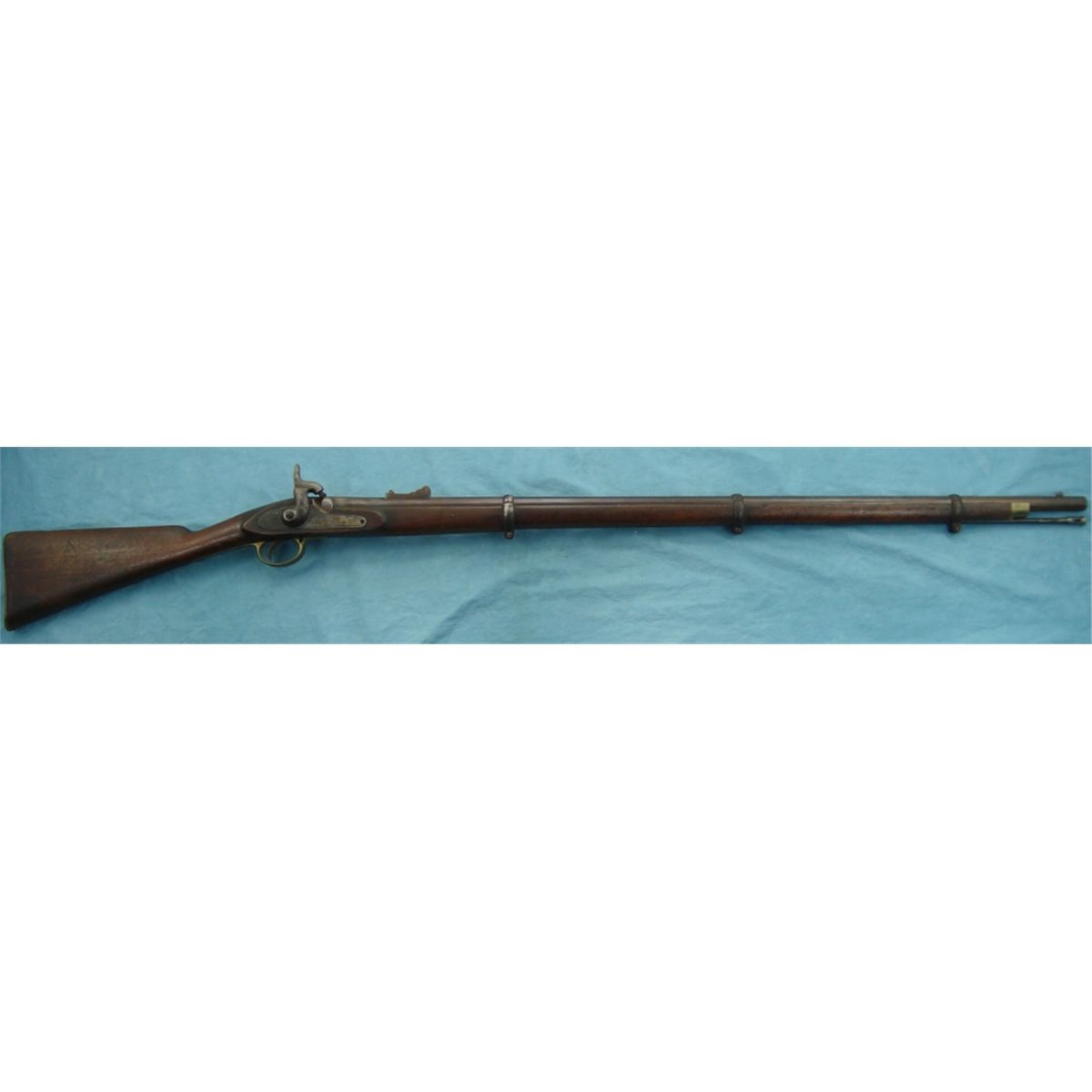 #NSN; Antique. Lock is marked "Tower Barnett London". 39" bbl. w/3 bbl. bands & iron ram rod. Rear sight leaf is absent. Stock is in good condition w/crack on opposite side of lock. Tower Musket were heavily imported & used by both sides during the Civil War.