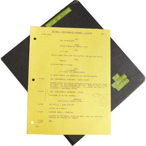 <B>"Towering Inferno" Script Owned by Emile LaVigne.</B></I> An original script, staff list, studio and location wage scale and shooting schedule for the "blazing" 1974 action thriller <I>Towering Inferno,</B></I> bound together in a personalized black notebook. Celebrated make-up artist Emile LaVigne used the script on set while preparing the faces of Steve McQueen, Paul Newman, William Holden, Faye Dunaway, Fred Astaire, and the rest of the stellar cast. Included in the script are LaVigne's annotations and an interesting sketch he made of O.J. Simpson's visage, alongside his make-up notes for Simpson. In Very Fine condition with mild age-toning to the pages and signs of wear to the notebook. <I> From the Estate of Emile LaVigne.</B></I><BR><BR><b>Shipping:</b> Books & Catalogs (<a target="_blank" href="http://www.heritageauctions.com/common/shipping.php">view shipping information</a>)