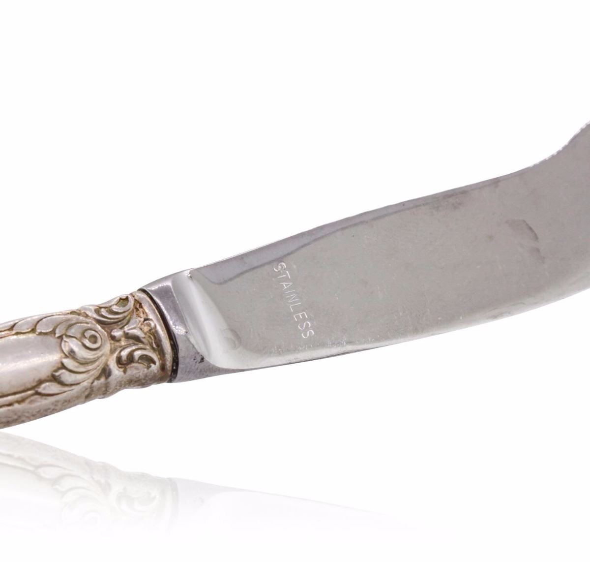 Set of 7 sterling silver hollow handles butter spreaders by Towle. Condition is excellent. Old master pattern. Marked on blades with the makers mark for Towle, STERLING handle, Stainless blade. 5 7/8'' in length. No monograms.