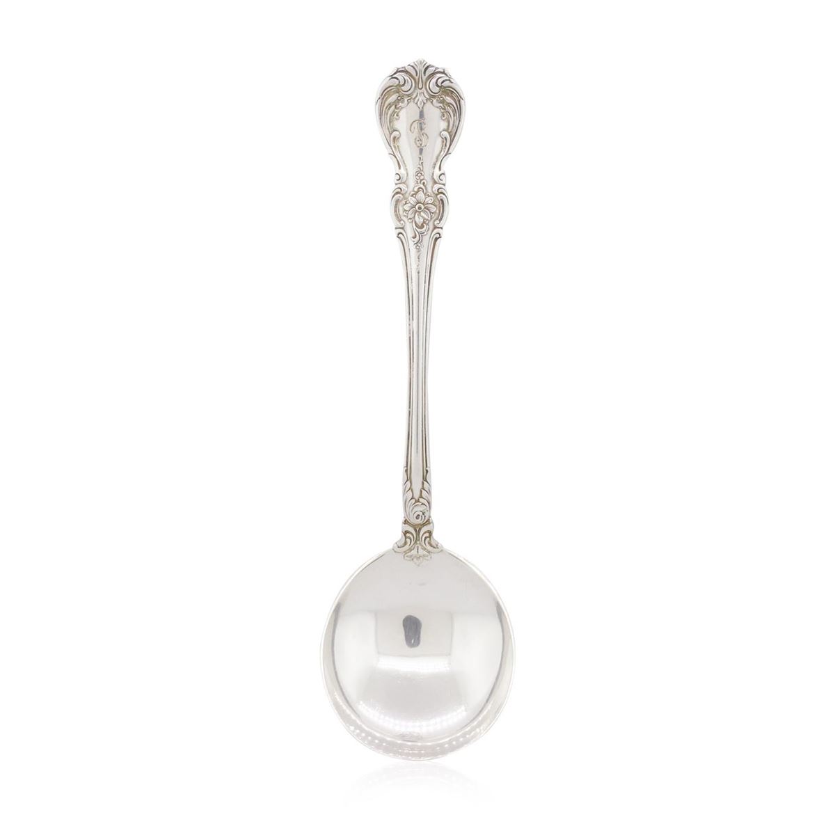 5 Towle Sterling old master round soup spoons measuring 6''. Each piece is in very good estated (used) condition. Monogrammed with beautiful period script "B".