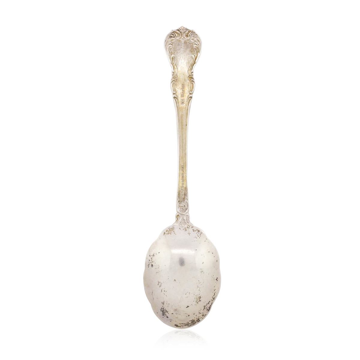 This is a beautiful sterling sugar spoon in the old master pattern from Towle in very good estate condition with few minor light scratches. Measures 5 3/4'' in length. The back of the handle is marked with Towle Sterling Old Master pattern. No monograms. This beautiful sugar spoon would make an excellent addition to any sterling collection.
