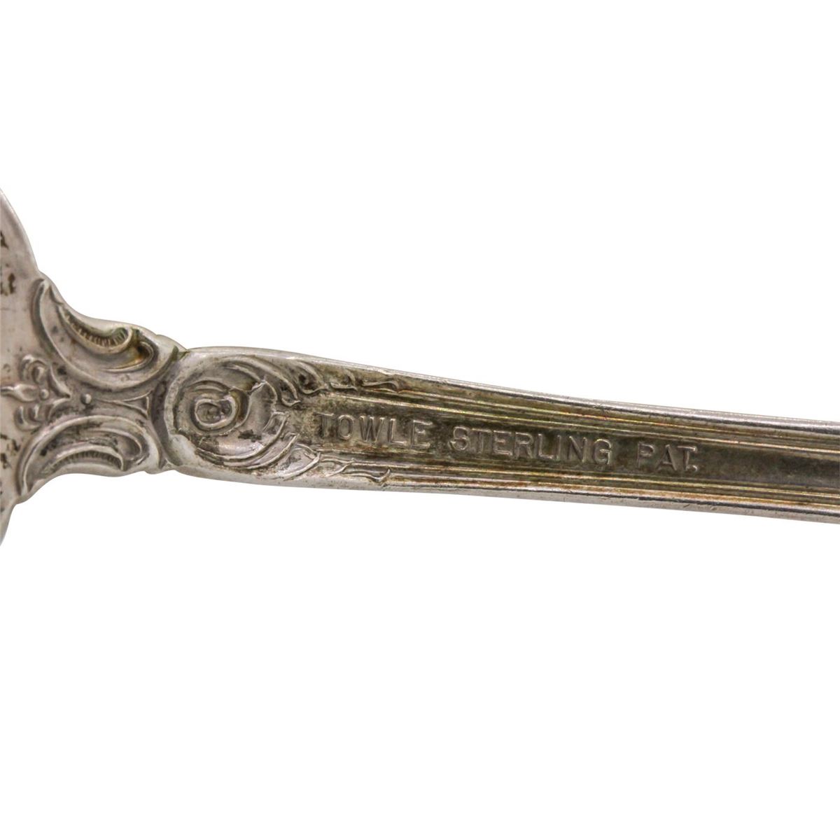 This is a beautiful sterling sugar spoon in the old master pattern from Towle in very good estate condition with few minor light scratches. Measures 5 3/4'' in length. The back of the handle is marked with Towle Sterling Old Master pattern. No monograms. This beautiful sugar spoon would make an excellent addition to any sterling collection.