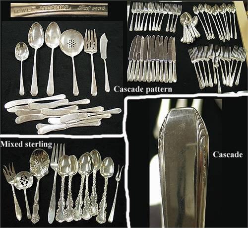 Towle sterling Cascade pattern service for 12 including knives, forks, spoons, flat butters and other accessory pieces. Includes other mixed pieces of sterling 96oz total sterling. No box