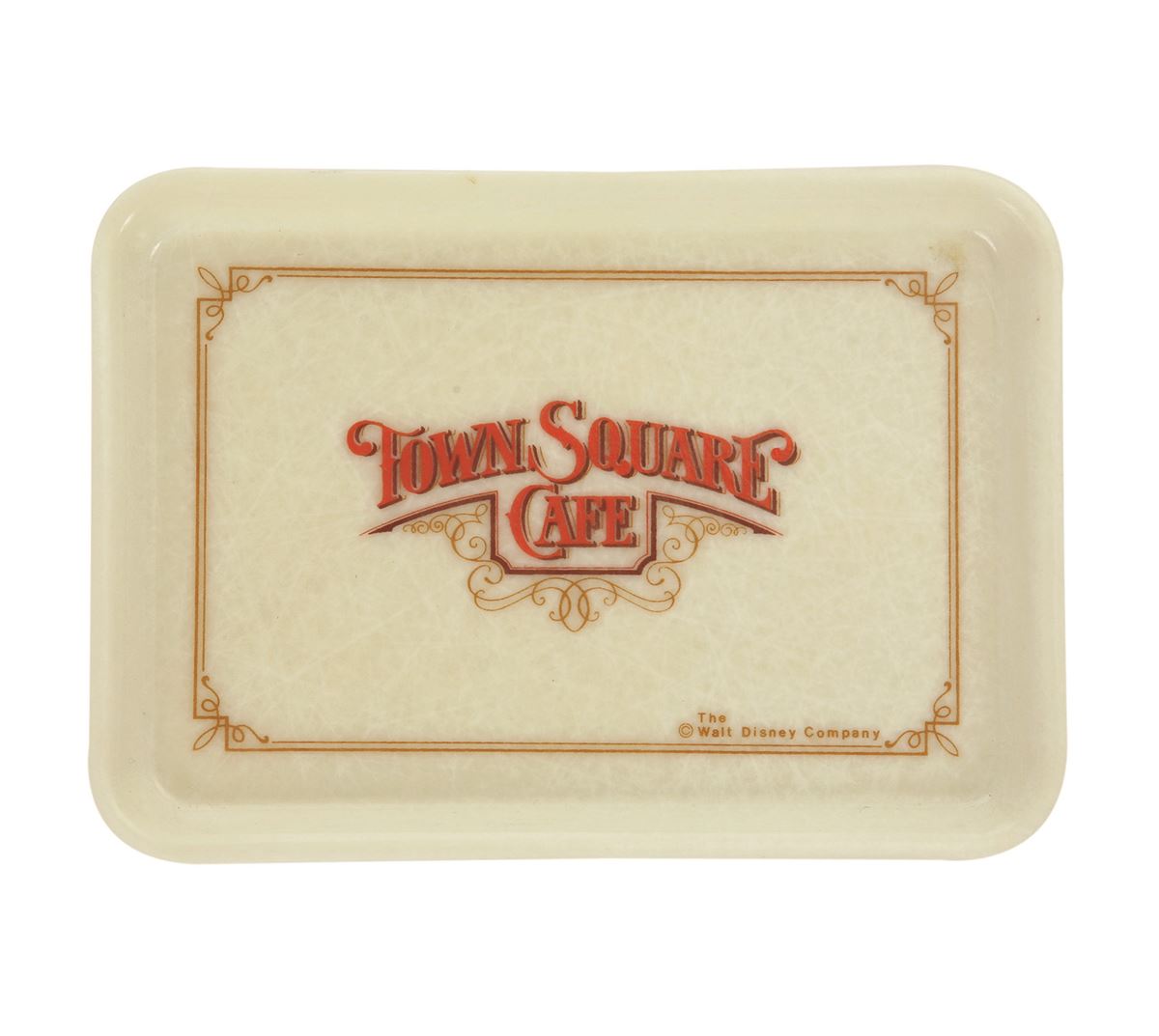 (Disneyland, 1980s) A tip tray from the Town Square Cafe restaurant at Disneyland. This stylish early park artifact features the logo for the restaurant on the surface, and is the perfect size for display or use. Copyright reads, “The Walt Disney Company”. Measures 5”x7”. In good condition with minor wear from use at the park.
