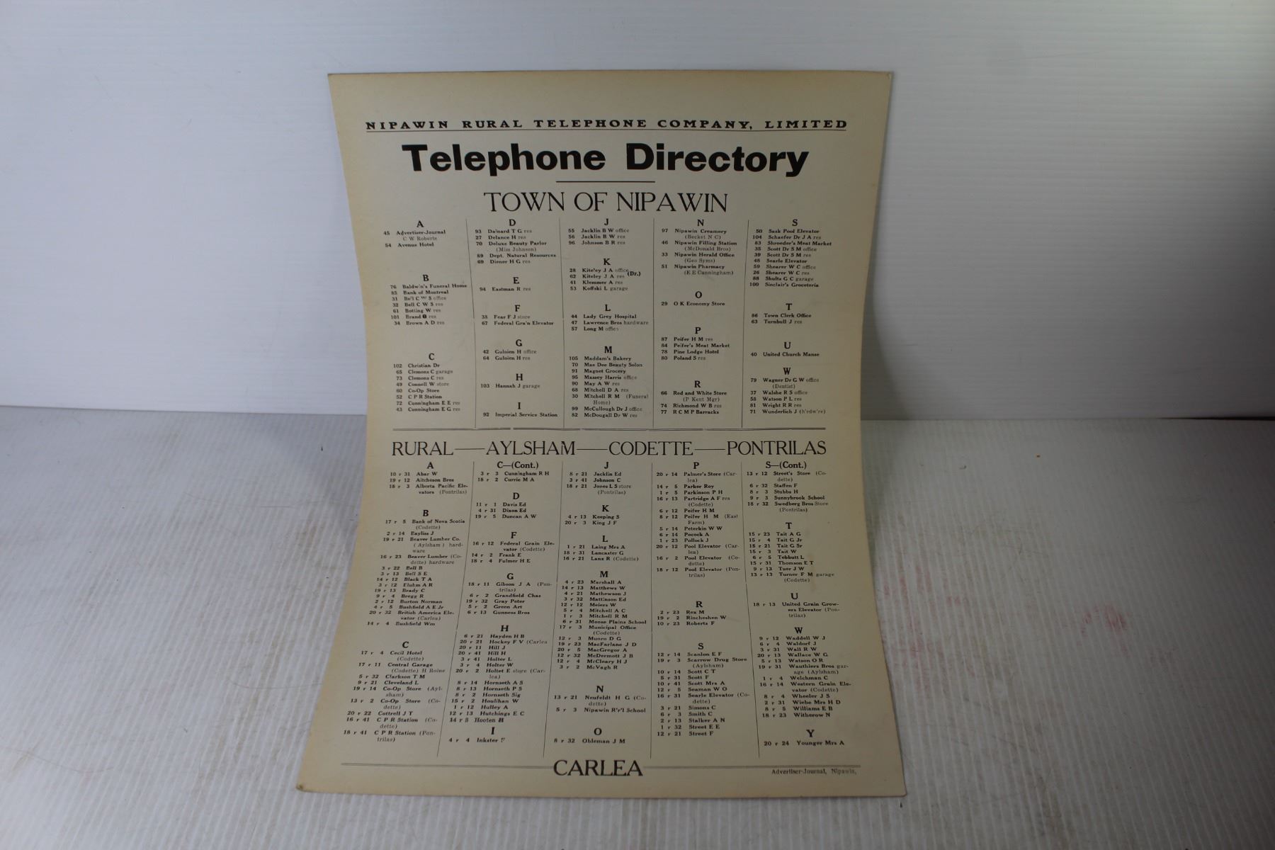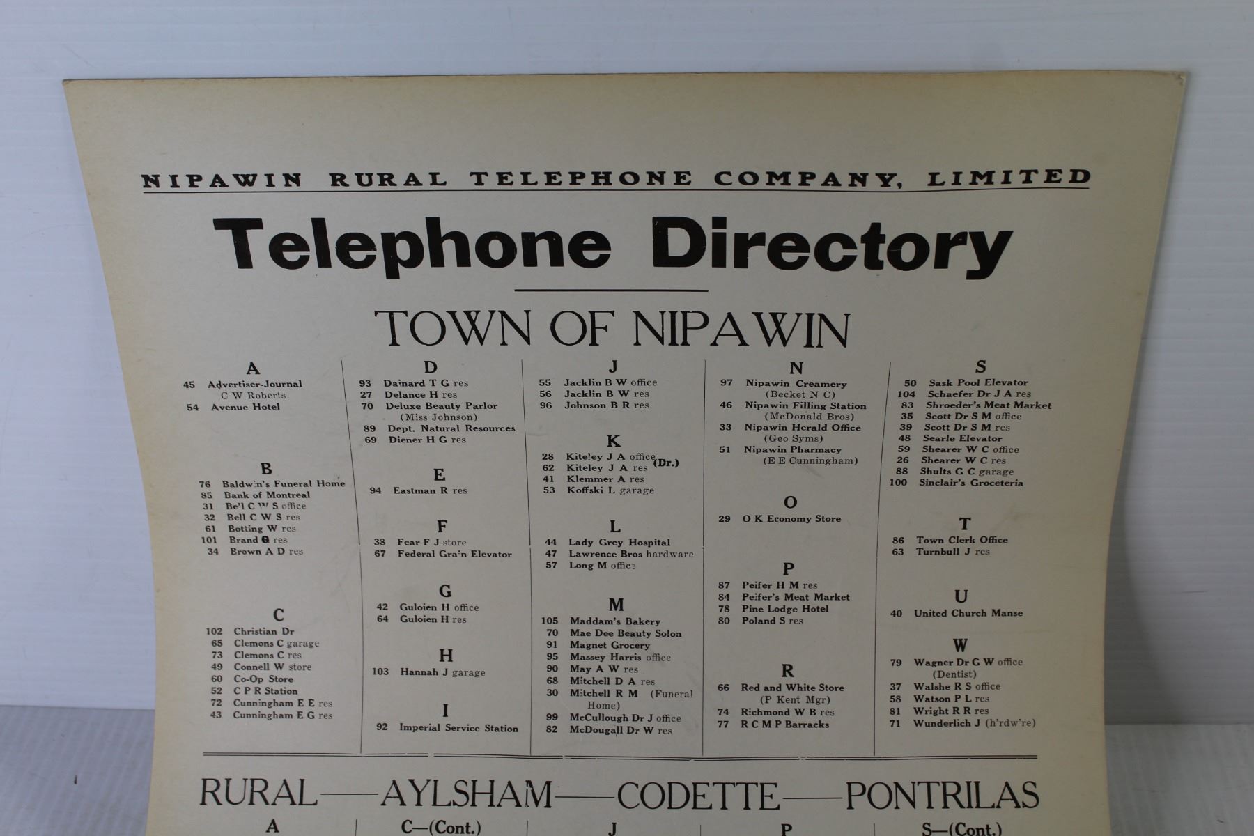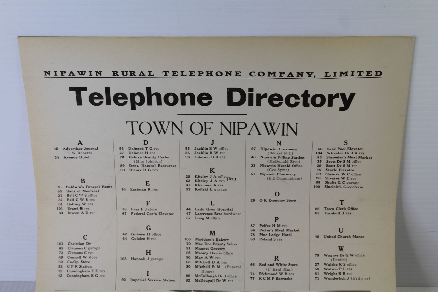 Town of Nipawin Telephone Directory