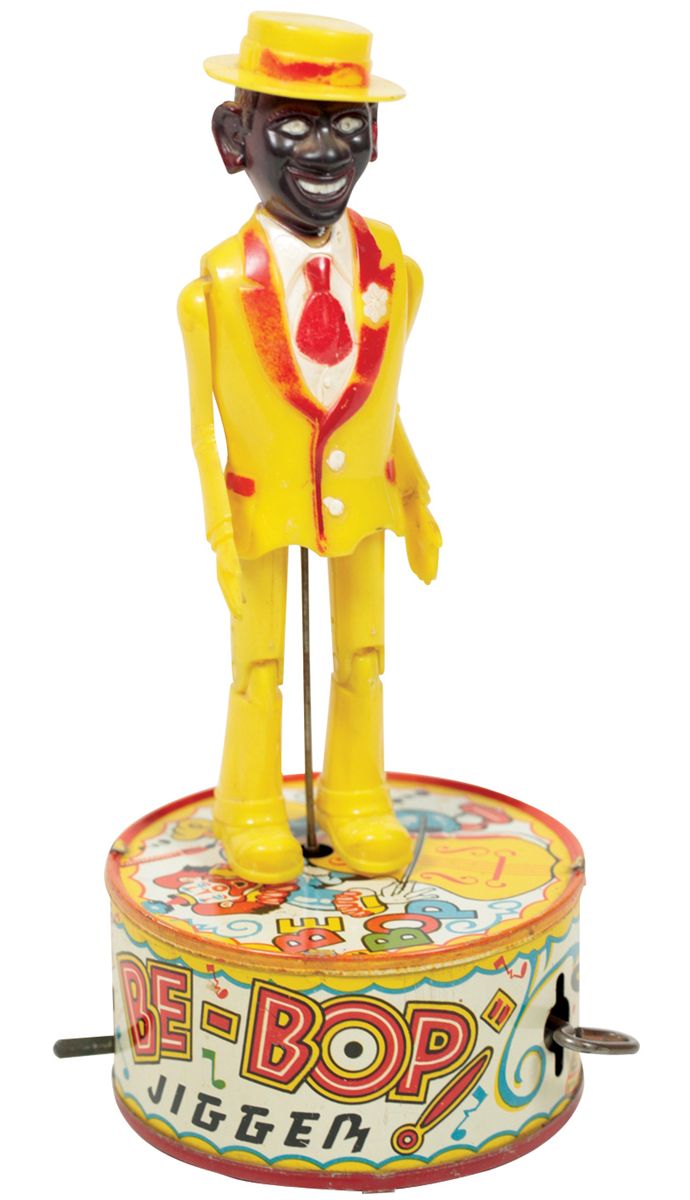 Toy, Black Americana, Marx Be-Bop Jigger tin windup, plastic smiling man dances up, down & around on