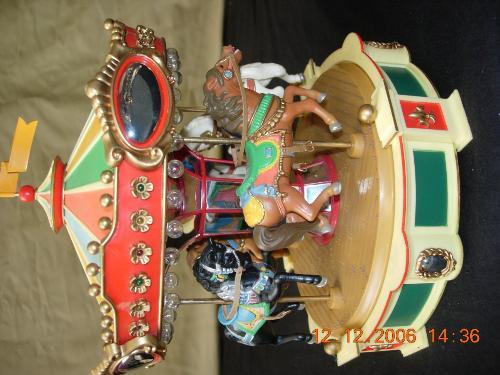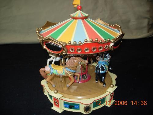 An Enesco product. The box states that the carousel is a "Visual and musical masterpiece." This item is approximately 10" tall.