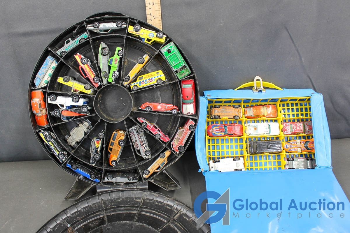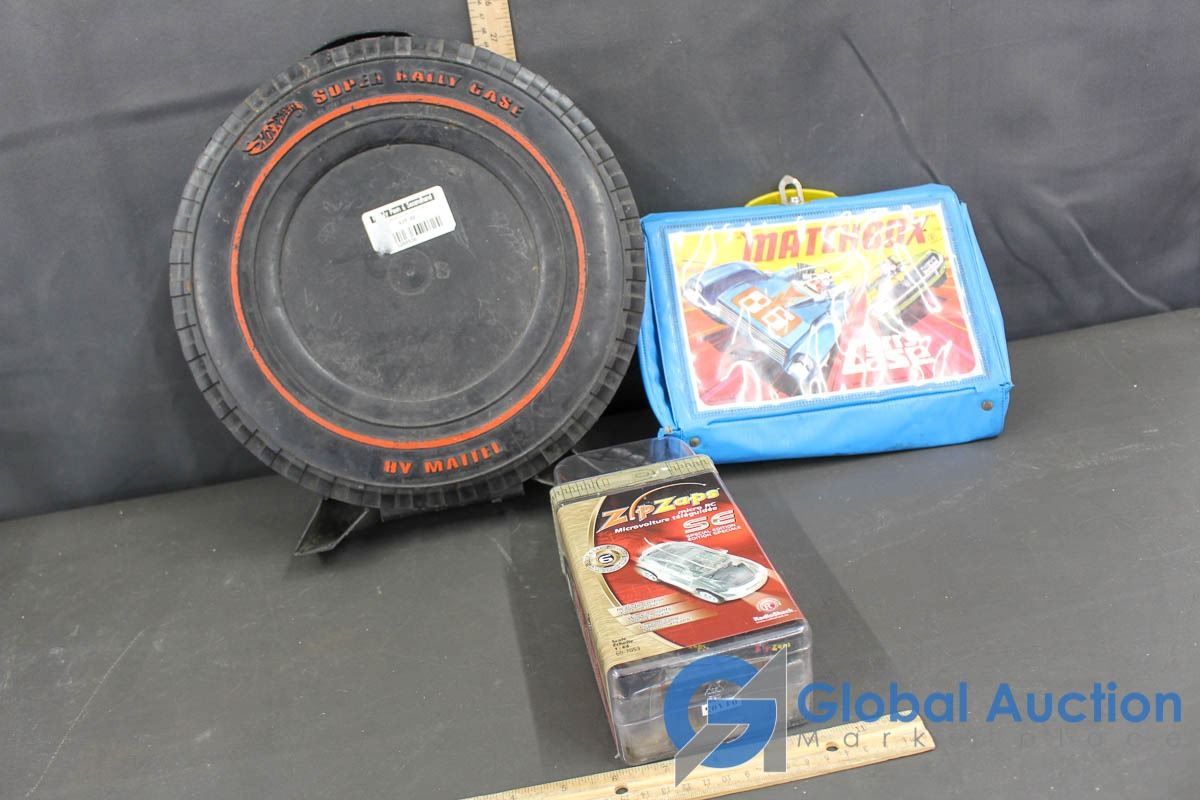 Toy Cars and Carrying Cases (2) W/ Zip Zap Micro RC - Matchbox, Hotwheels. etc.
