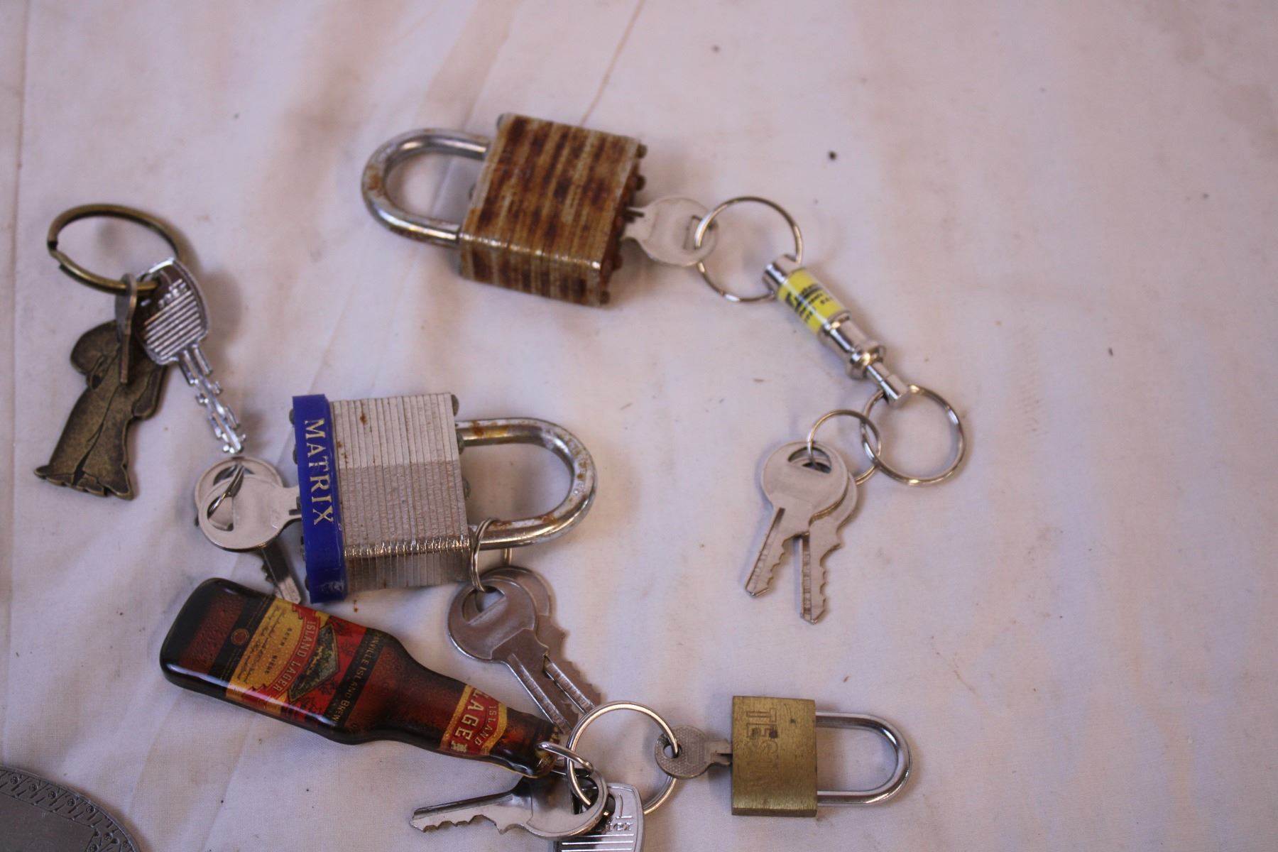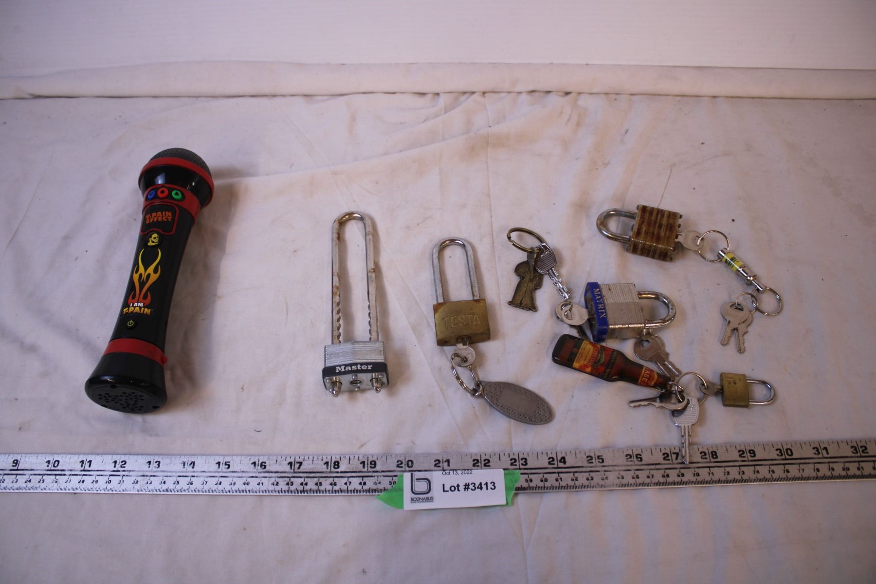 Toy Microphone (works) + (4) Locks and Keys
