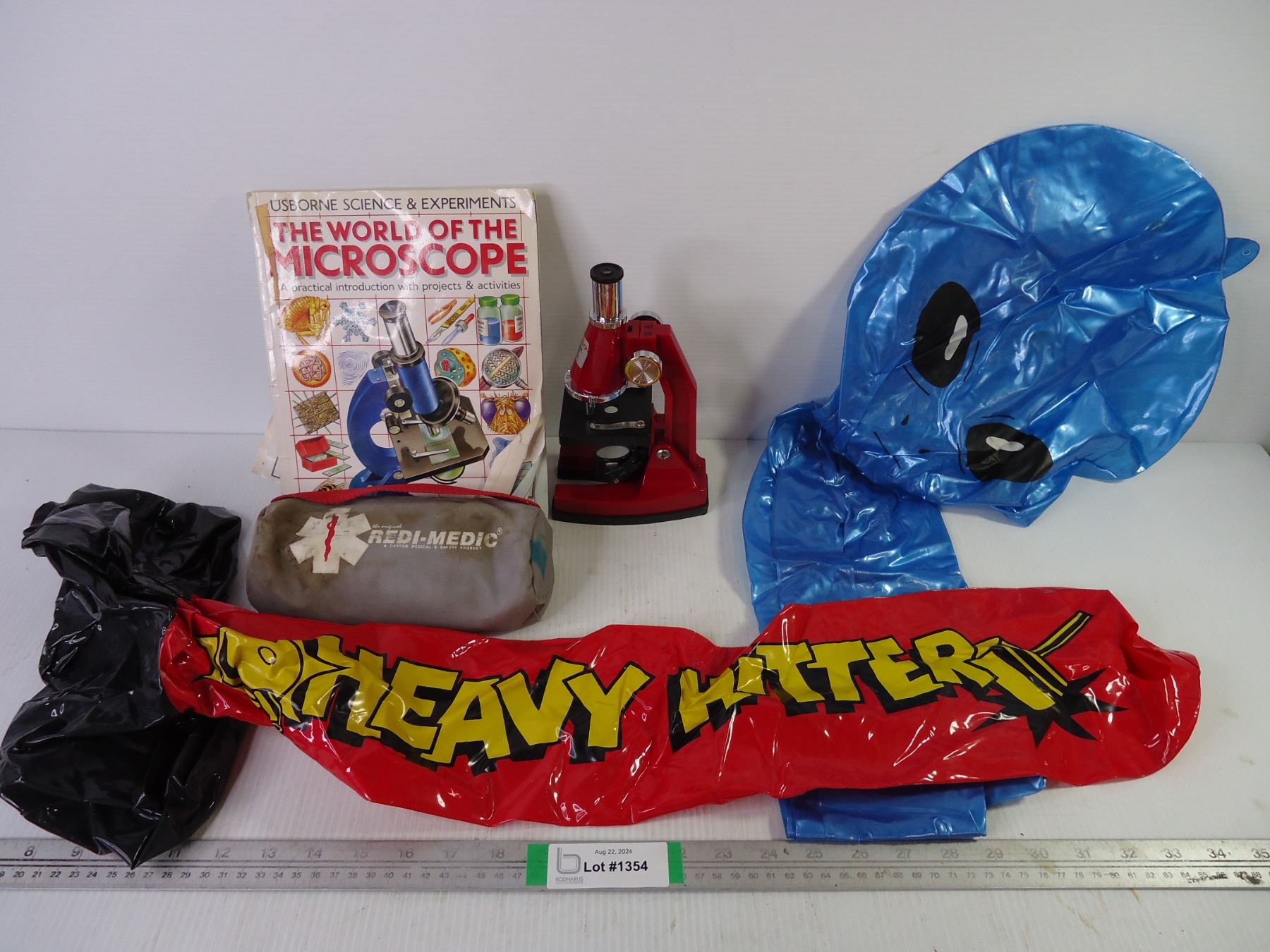 Toy Microscope, and Book, First Aid Kit and (2) Inflatables