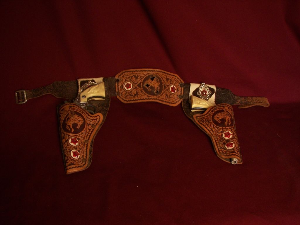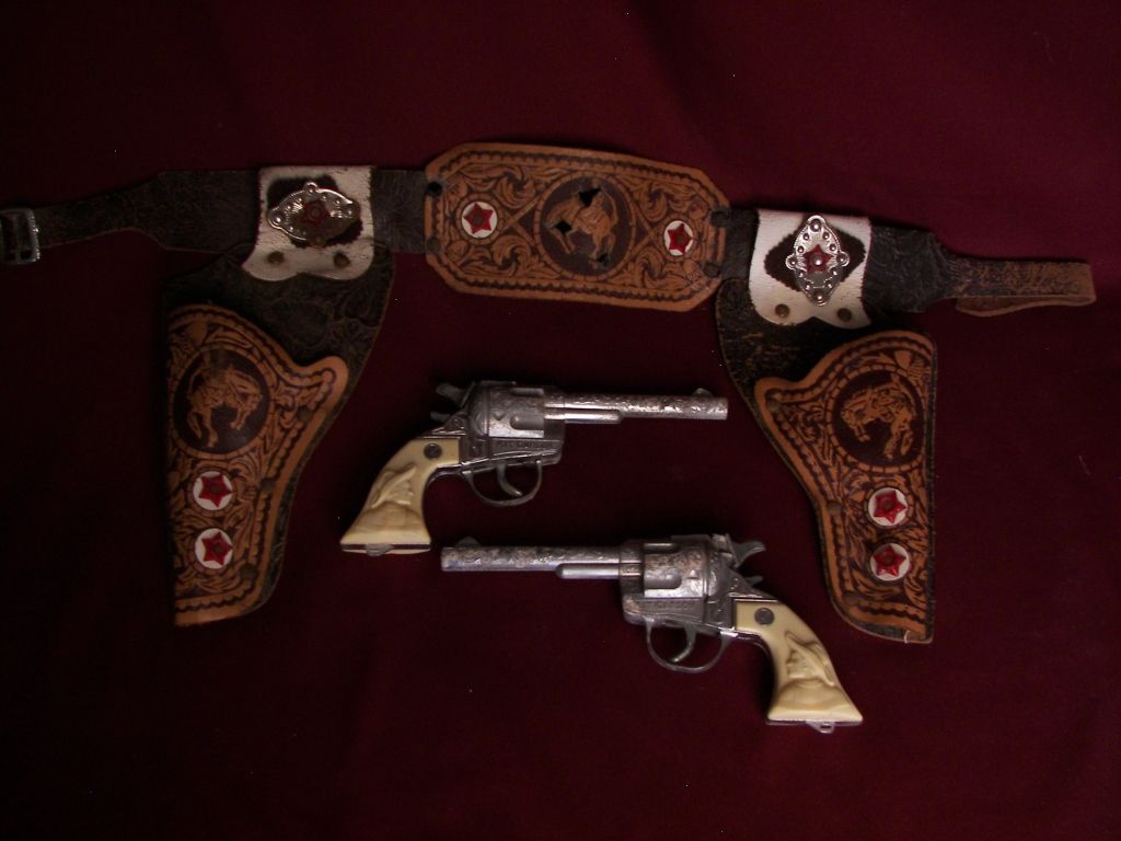 (7724) Toy Pistol Set, Kit Carson Model, With Original Leather Double Holster,