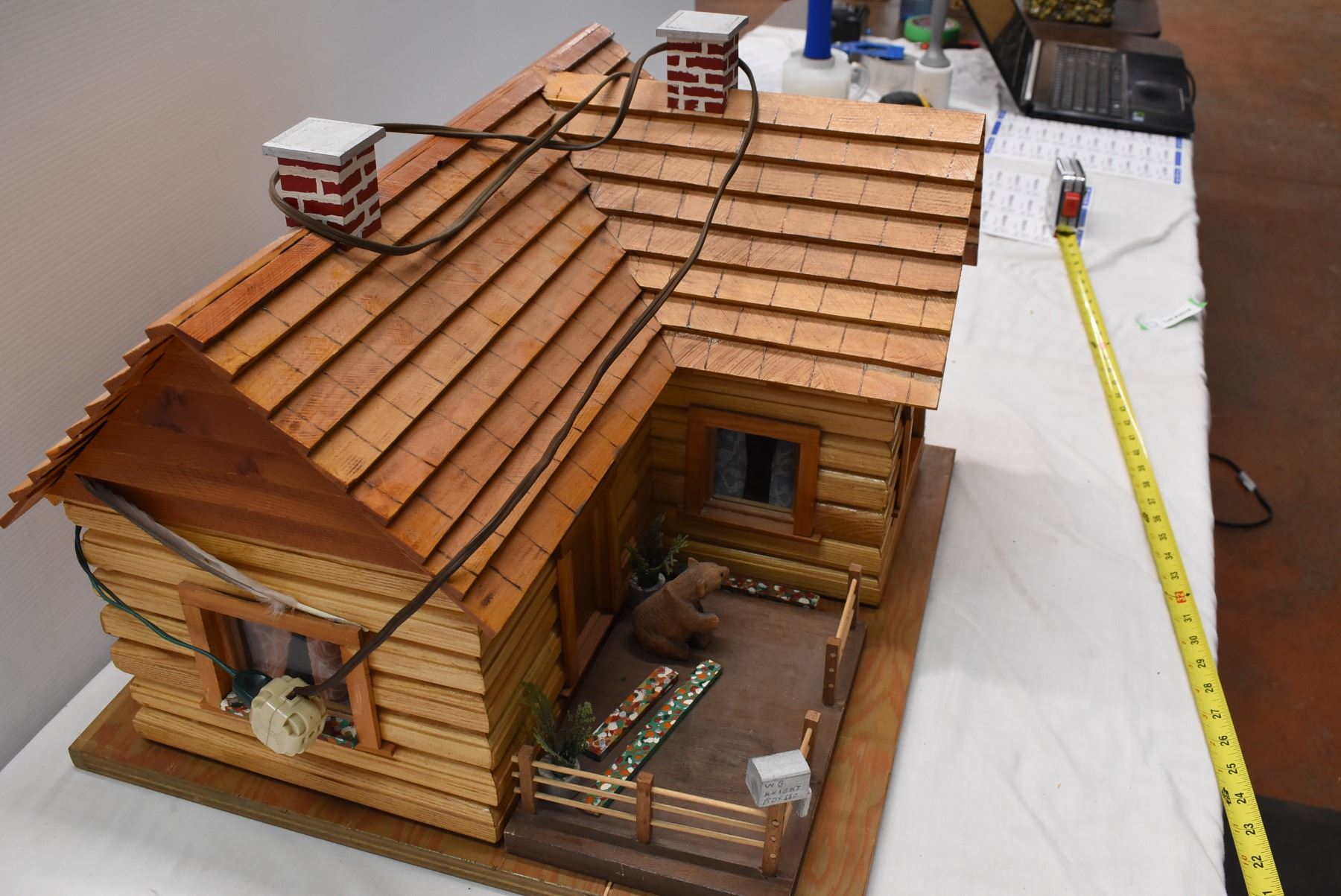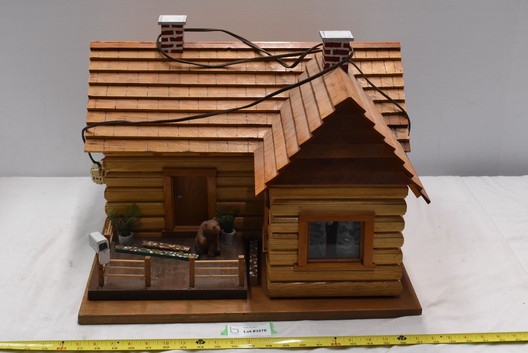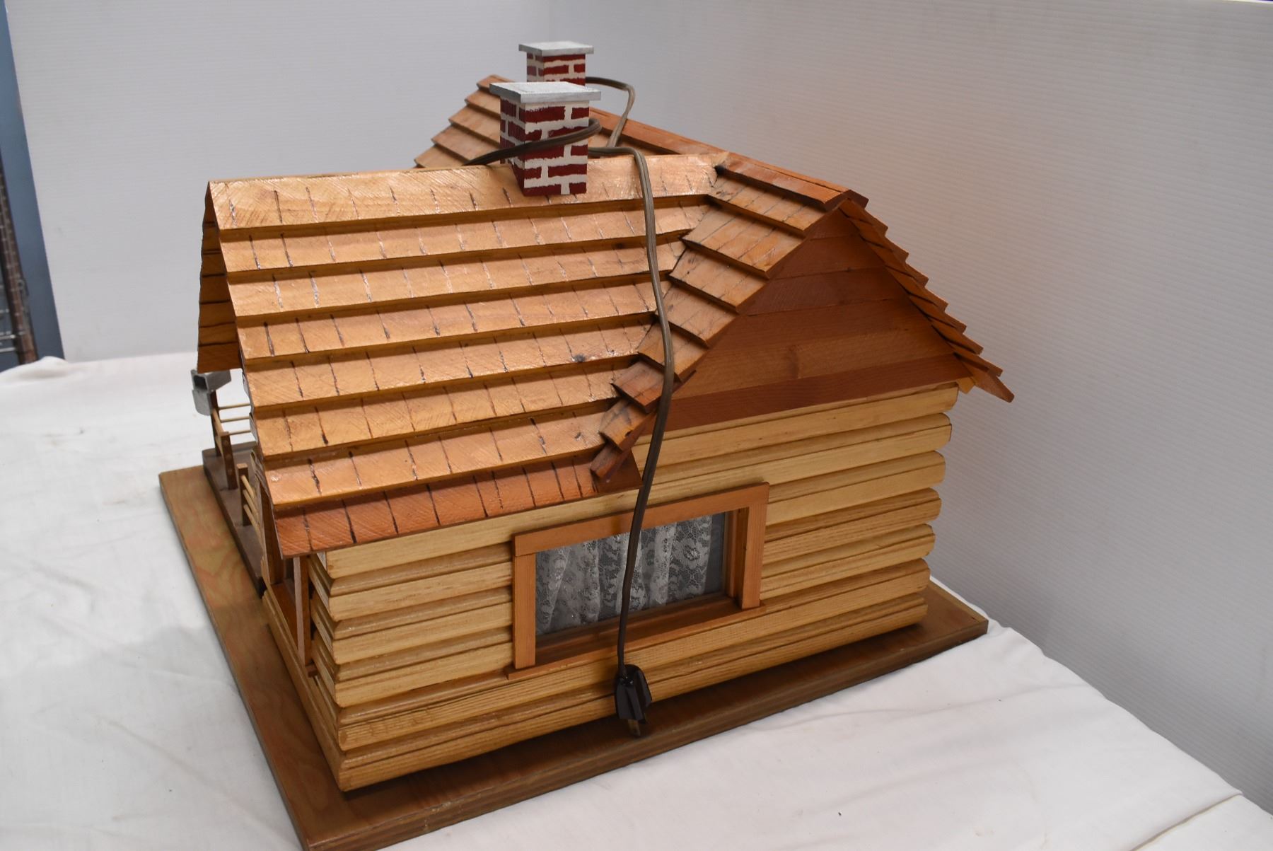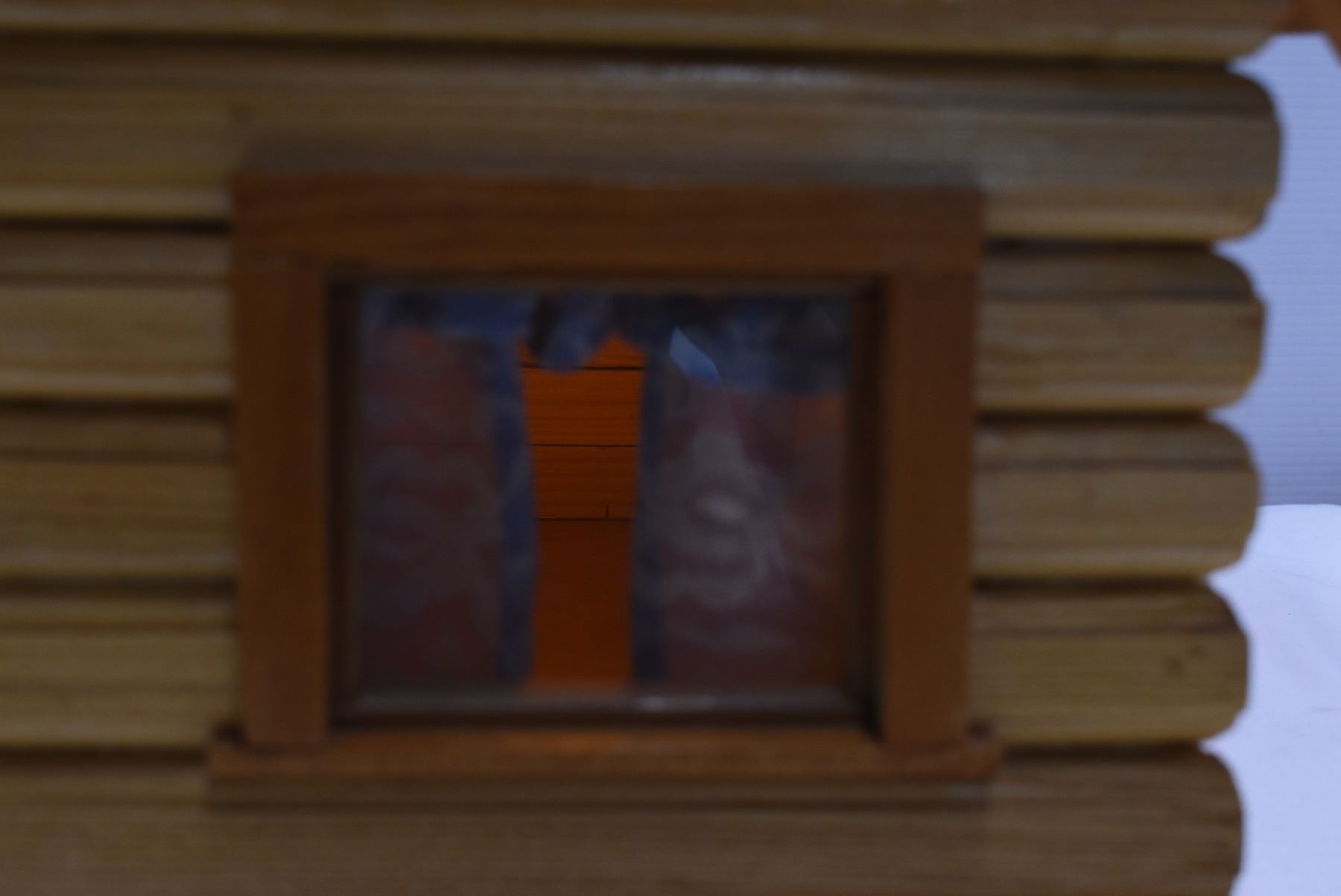 Toy Sized Wooden Cabin w/ Lights inside. Base not attached. 21"x21"x15"