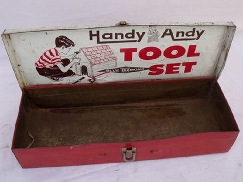 Tin Handy Andy toolset box - no tools 14"x5"x2.5"