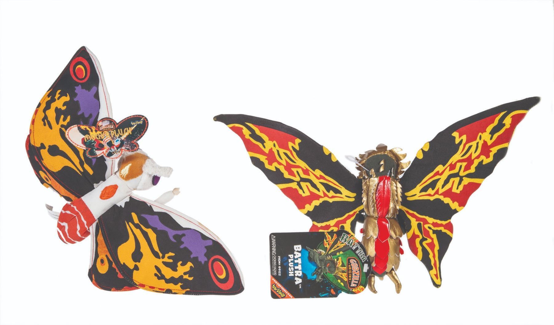 2005. Toy Vault Plush Figure Set of 2 w/tags. Mothra: 14” wingspan Battra: 15” wingspan. VG+.