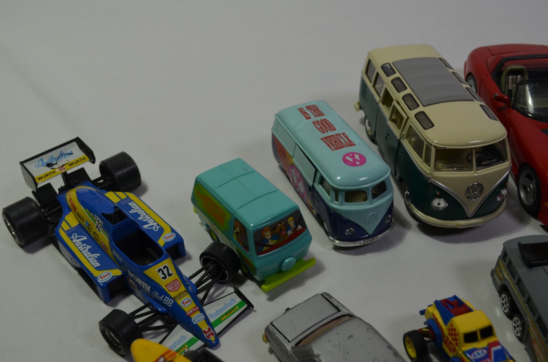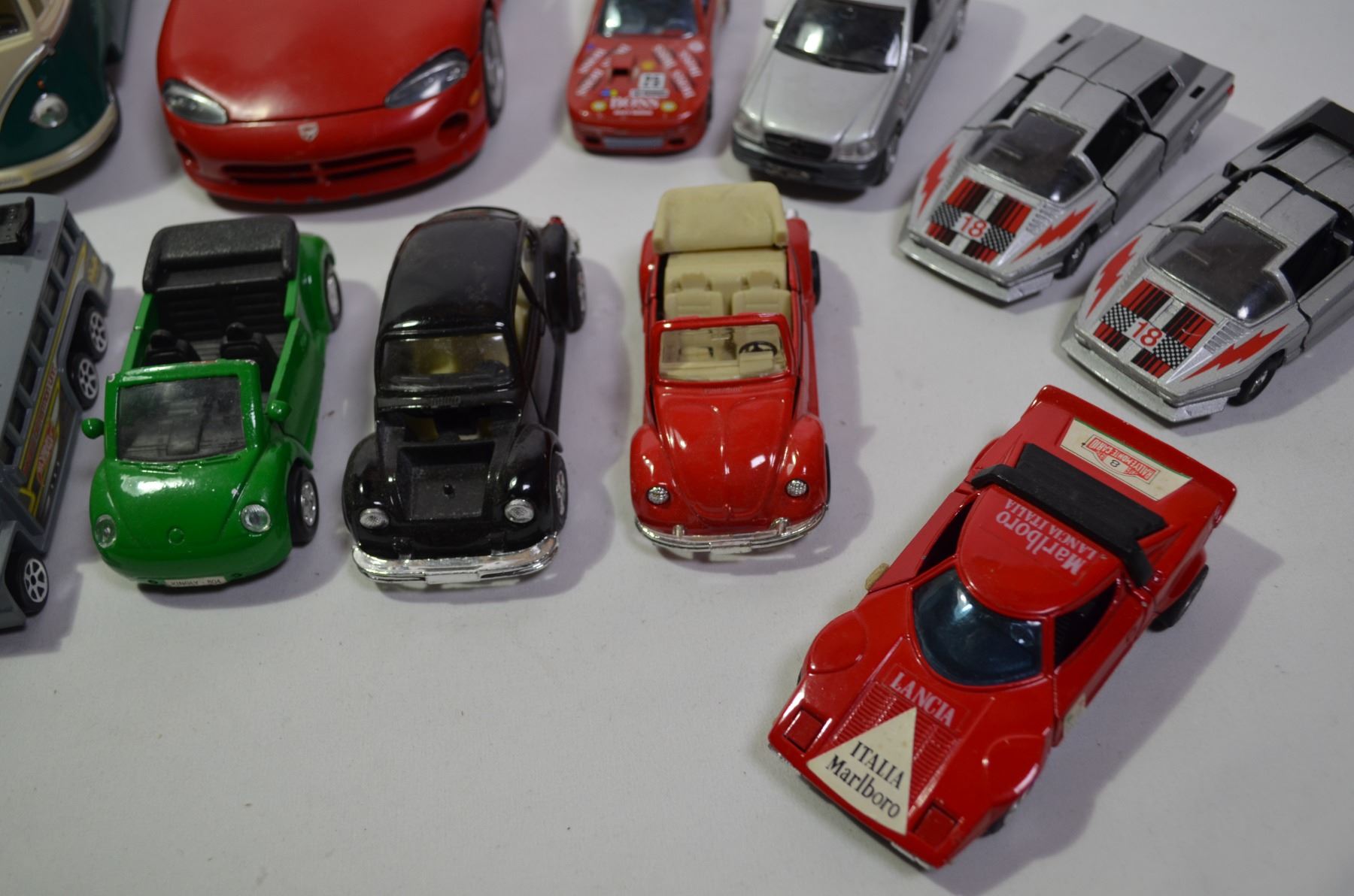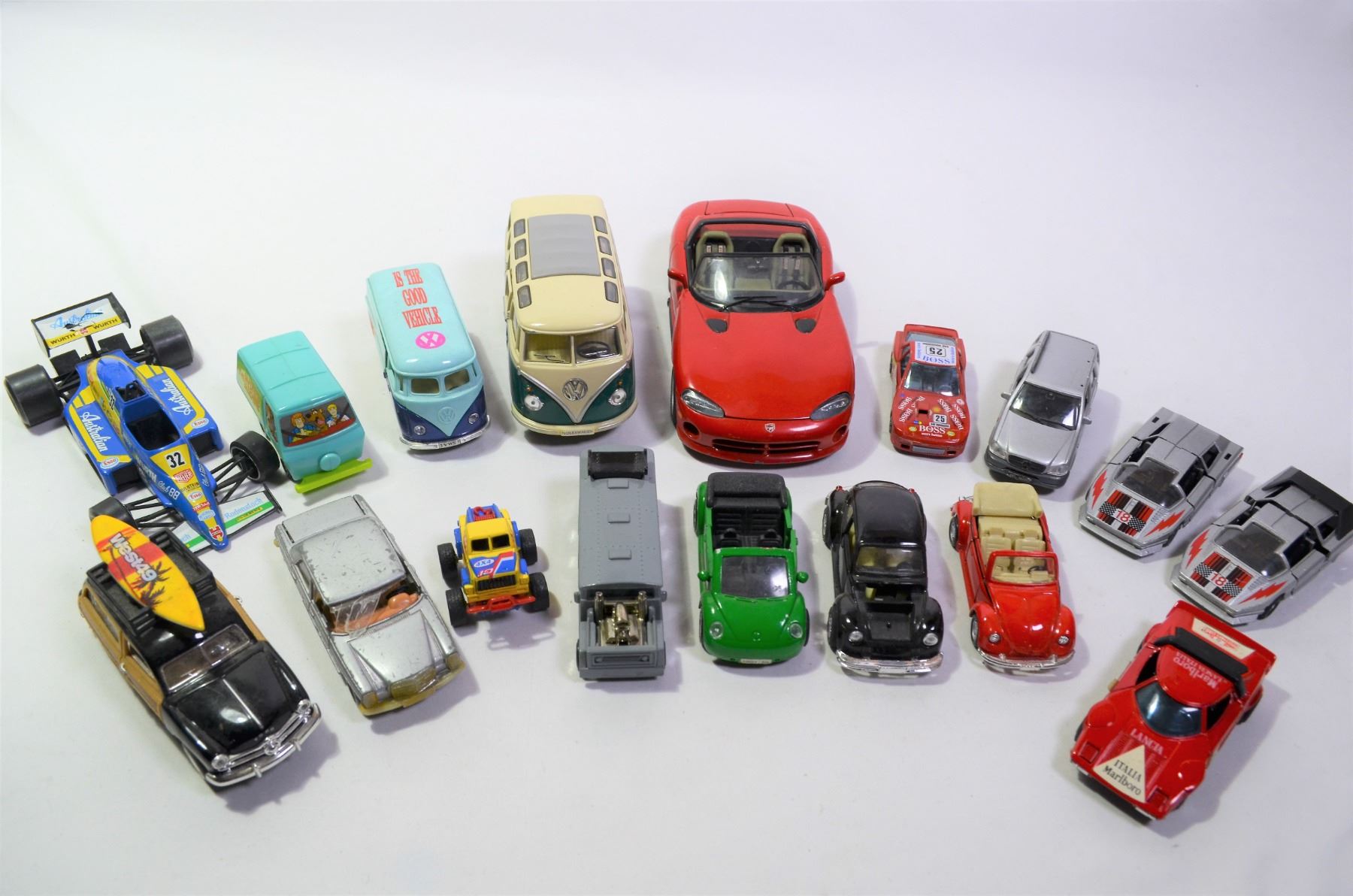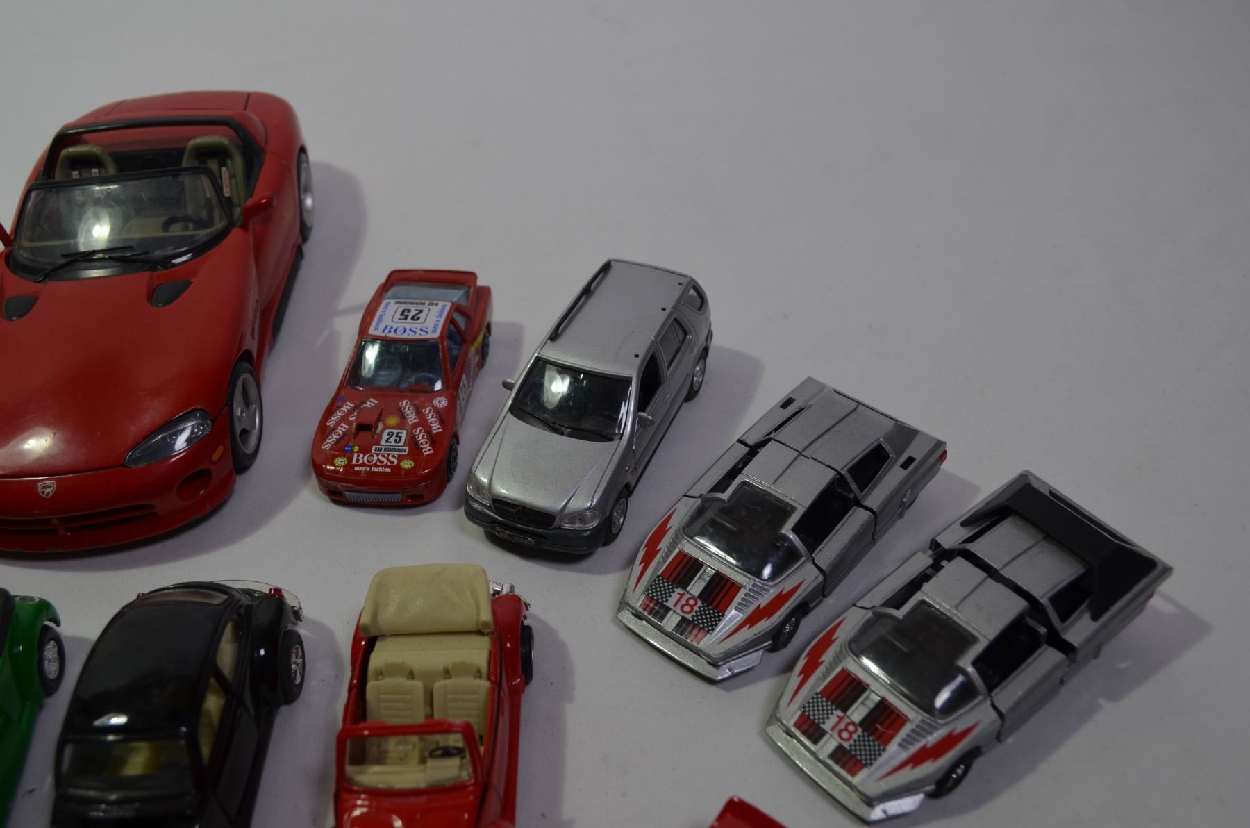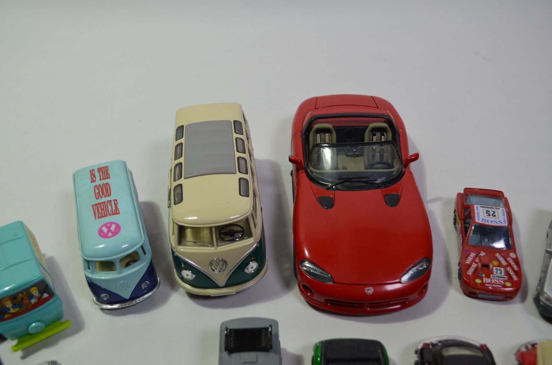 Bburago 1/18 Scale and other smaller cars. Several pull back cars. Condition varies, as is.