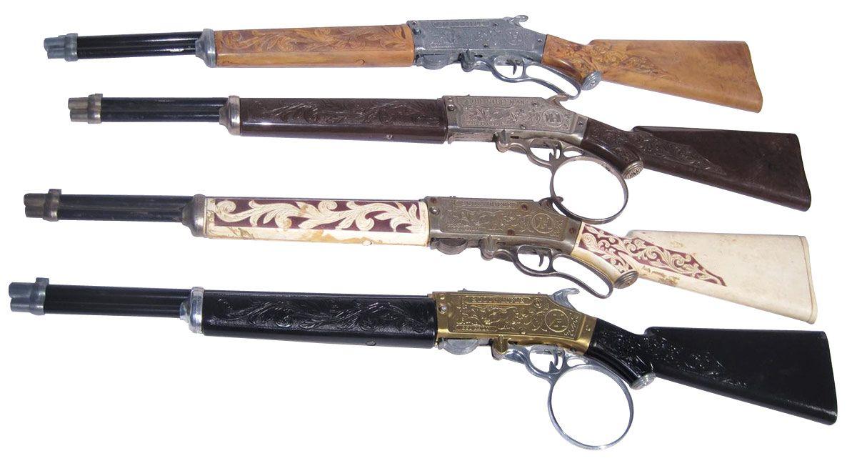 Toy cap guns (4), Hubley rifle cap guns-3 different variations of the Scout Rifle & a Rifleman, VG t