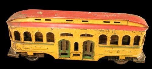 Toy, streamlined, Trolley, Rail-car in original paint doors open and close