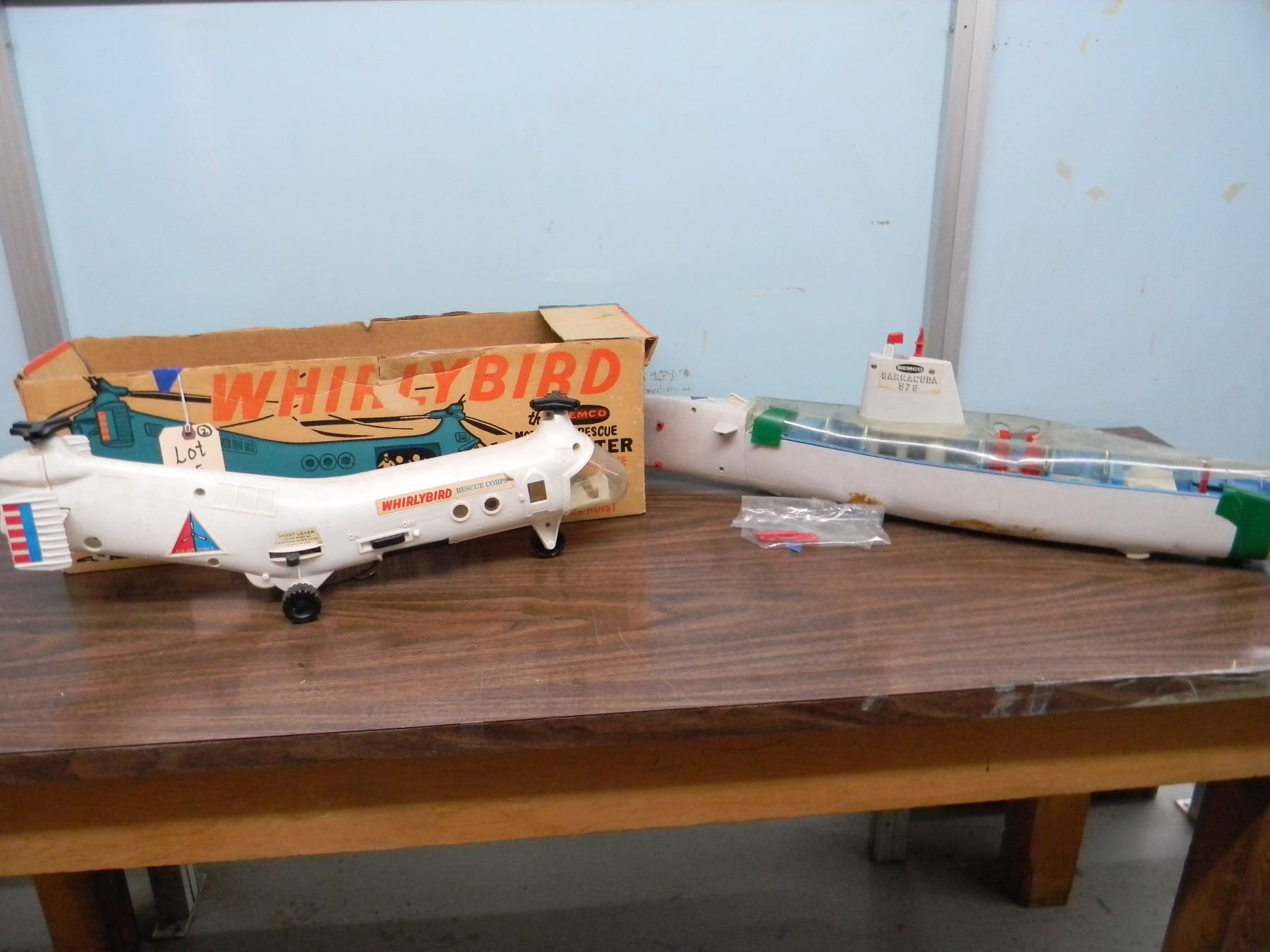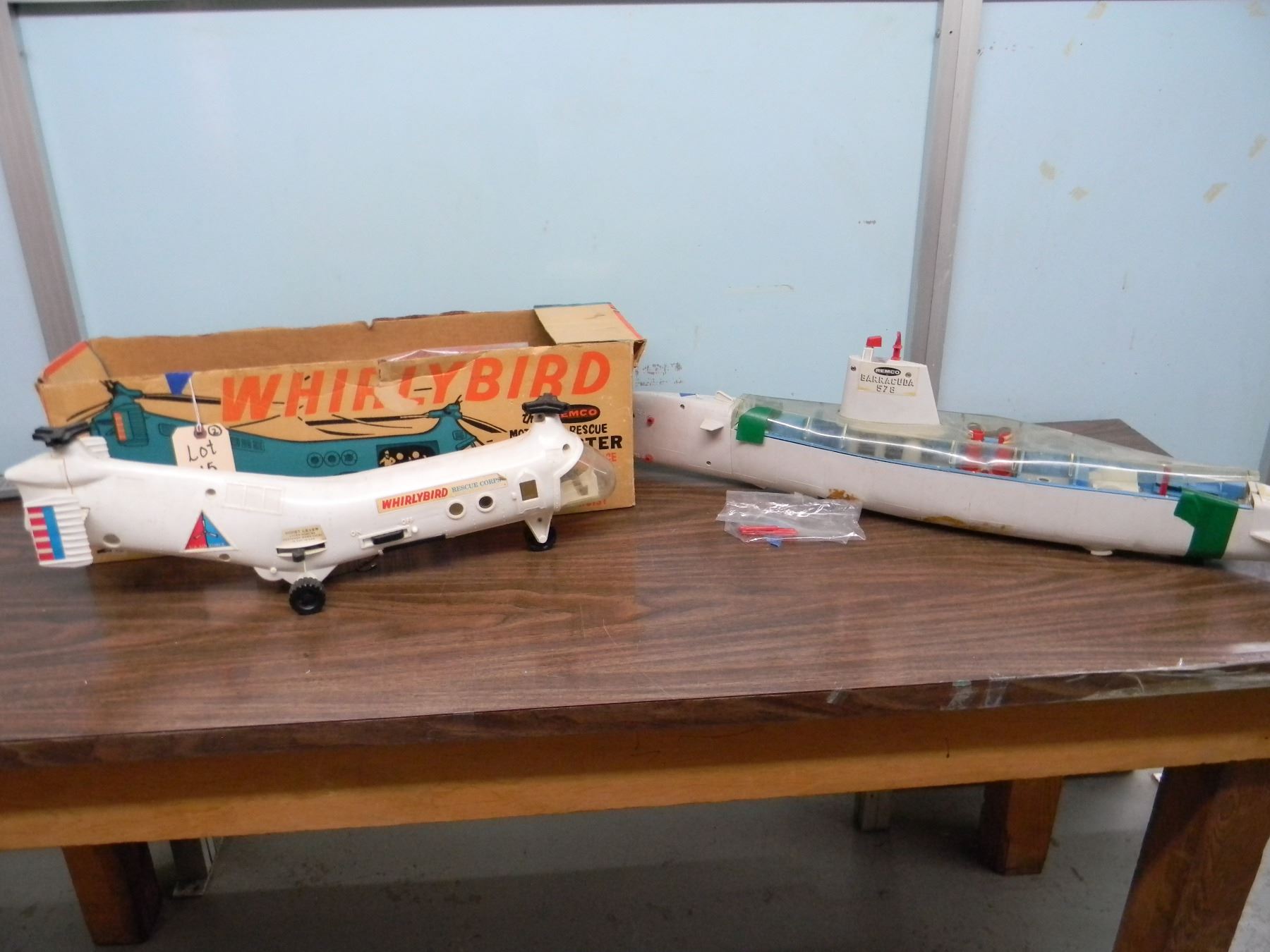 1960's era REMCO "Whirlybird" with box; also REMCO Barracuda 578 submarine, approx 3'