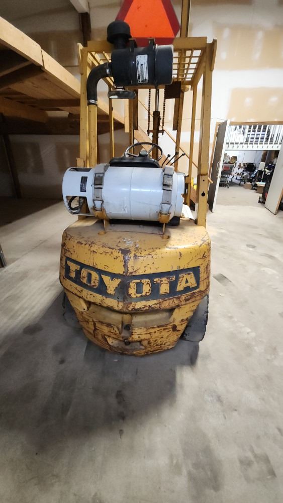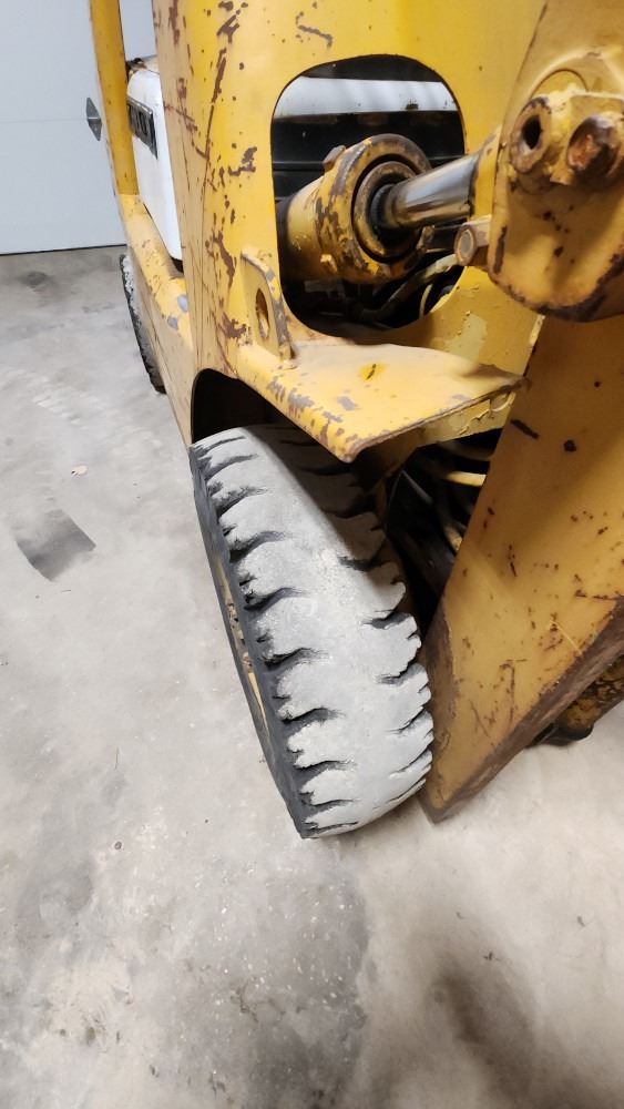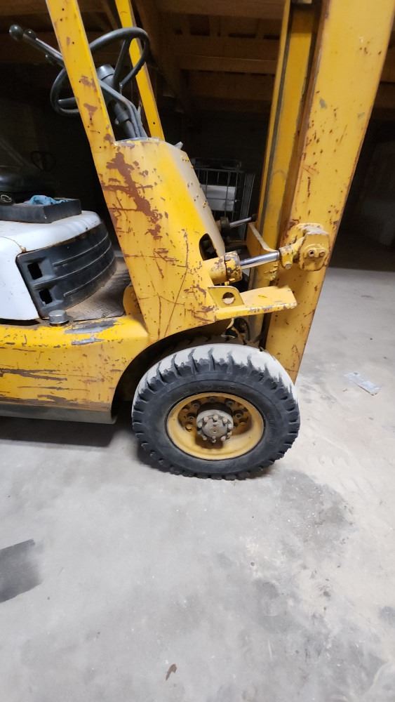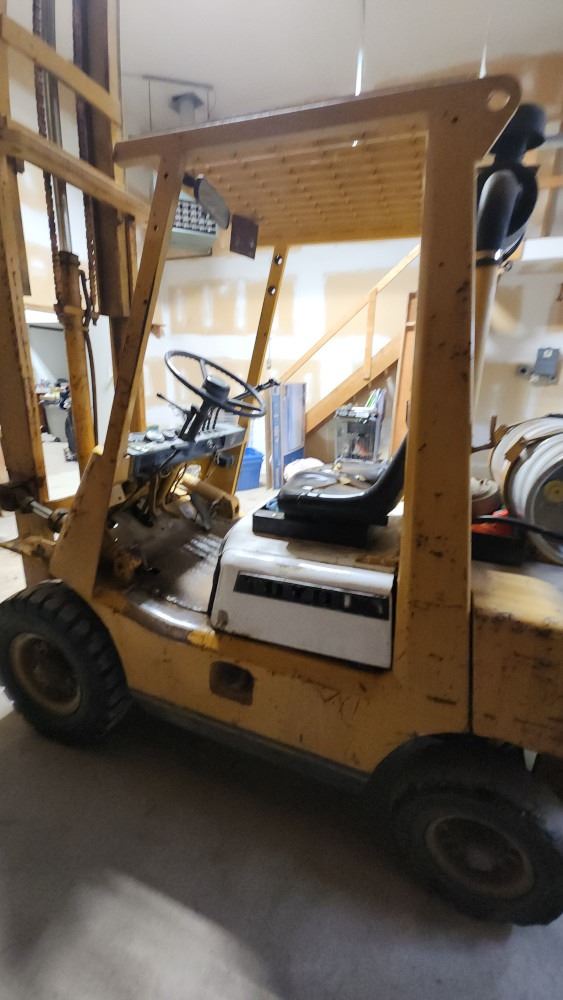 Please Watch Movie from the Engine! In Working Condition / With Extra Propane Bottle / Fork Extensions /Brakes Work But A bit Wreak / Tires Are Worn / Automatic Tansmission Was Done 5 Years Ago / Power Steel / 4 Cylinder Motor / This Is A Great Unit Working Fork Lift / Buyers Responsible For Loading & Removal