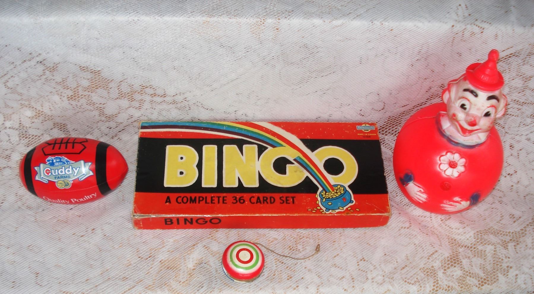 Toys Rolly Polly Bingo Game Advertizing Footo Promo and YoYo