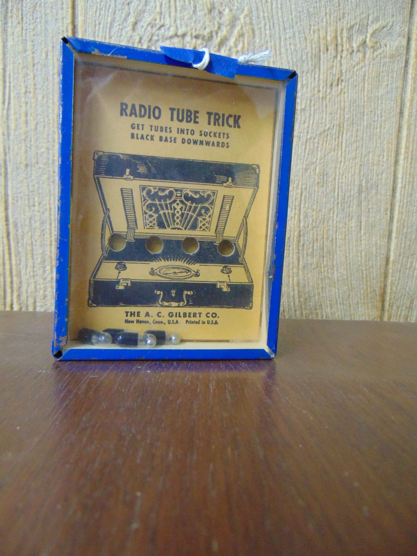 Radio Tube Trick game; get “tubes” into the “sockets”; cute!; nice; circa 1920's; made by A,C, Gilbert Co.