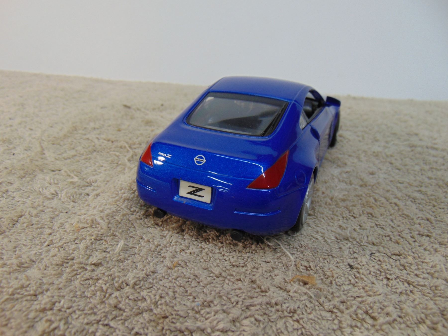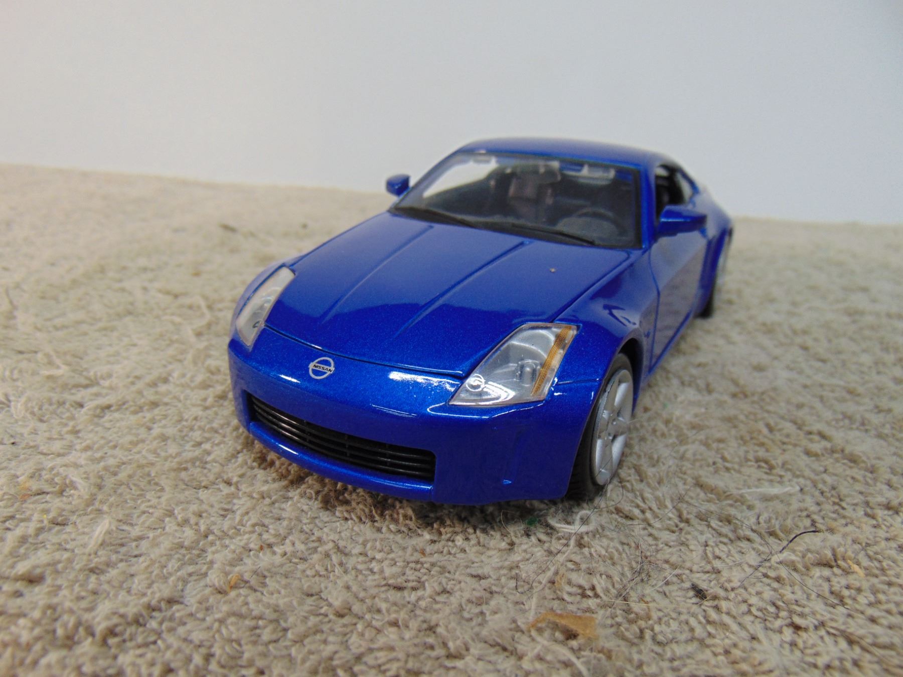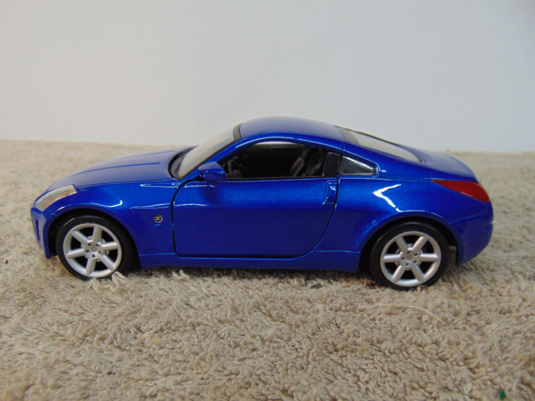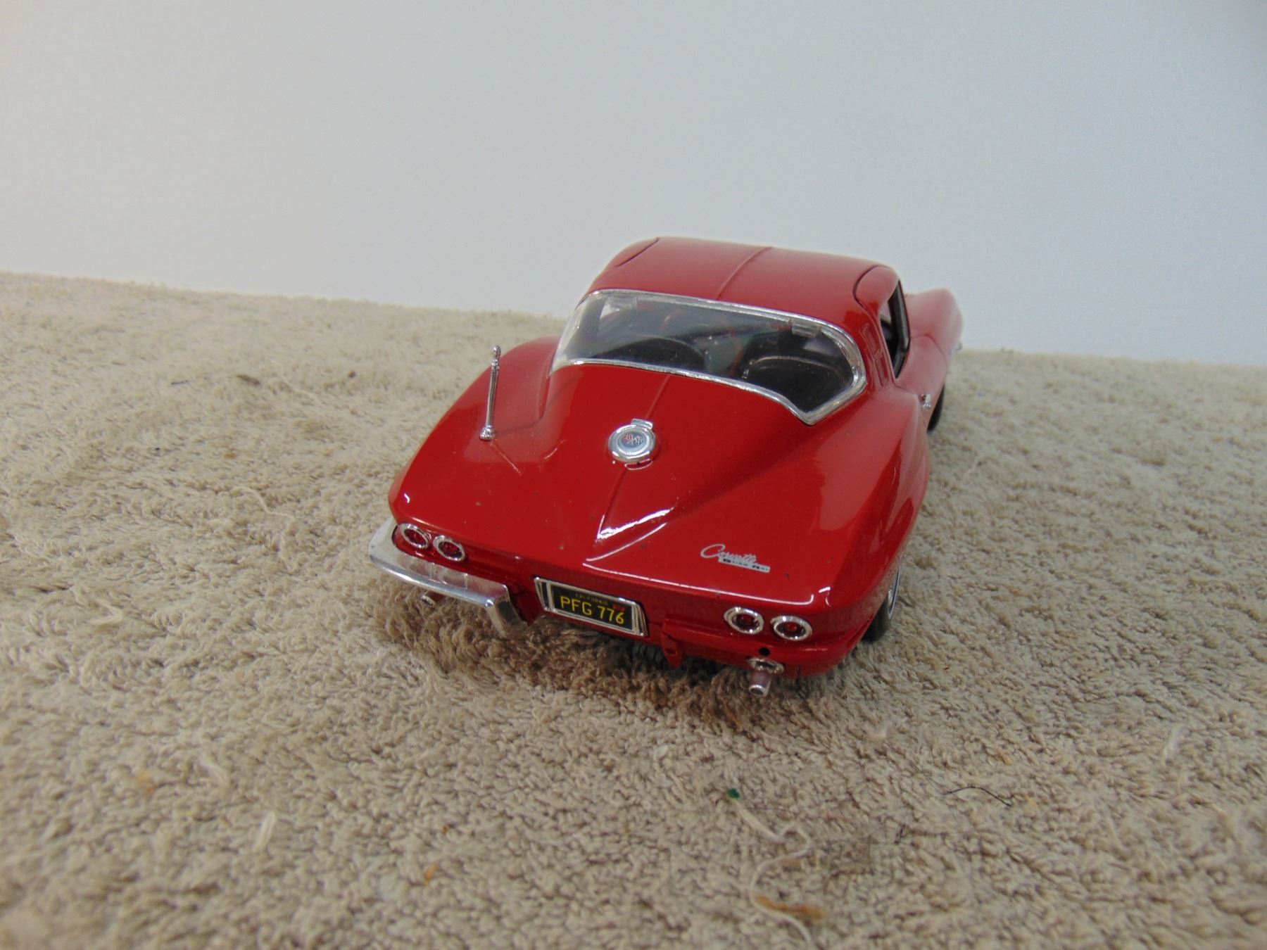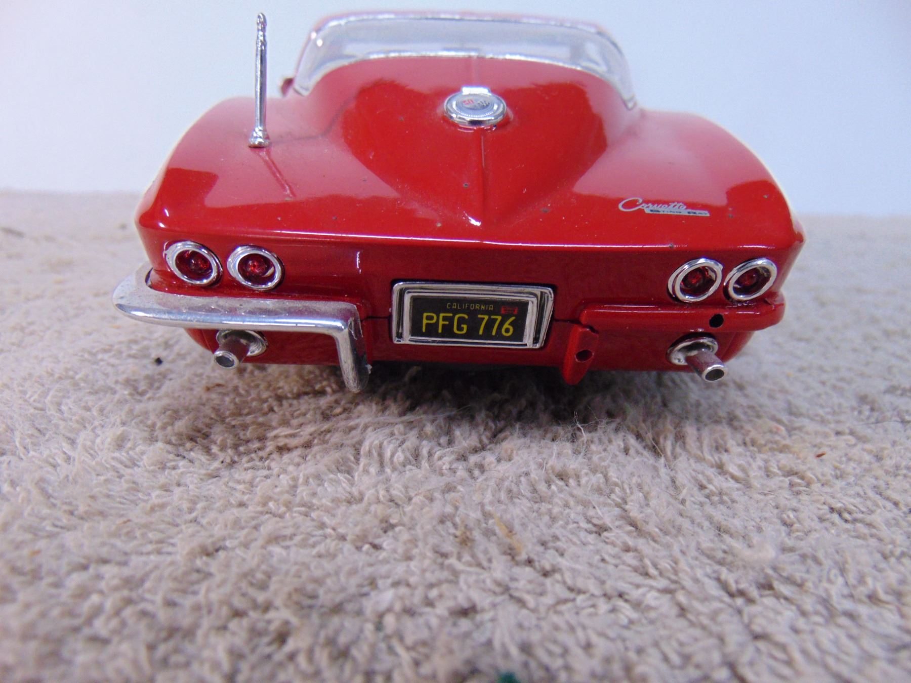 Two Precision die cast metal cars: 1) 1:24 Nissan 350Z; 2) 1:18 Chevrolet Corvette, circa 1965, missing one rear bumper